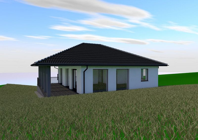 Szerkezeti leírás: Beton sávalapozás. 30-as tégla főfalazat + 15cm dryvit szigetelés. 10-es tégla válaszfalak. A külső nyílászárók műanyag szerkezetűek, 3 rétegű fokozott hőszigetelésű üvegezéssel ellátva, bukó-nyíló kivitelben, kívül Antracit fóliával, alumínimum elektromos redőnyökkel szerelve szintén Antracit színben. Beton födém perlitbetonozva + 20cm kőzetgyapot szigeteléssel ellátva. Betoncserép fedésű tető.