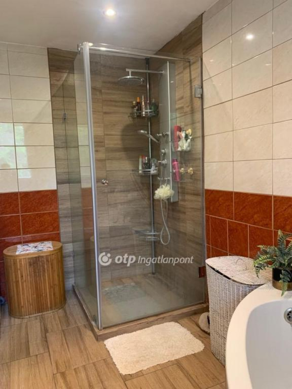 A tetőtér egy igényesen kialakított, belső lépcsőn keresztül közelíthető meg. A szint kellemes hőmérsékletéről egy három éve telepített Gorenje klímaberendezés gondoskodik.