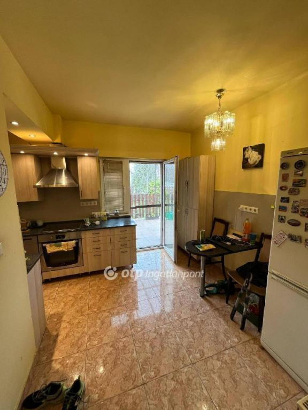 A konyhából közvetlen kijárat nyílik a 46 m2-es, járólappal burkolt, fedett teraszra.