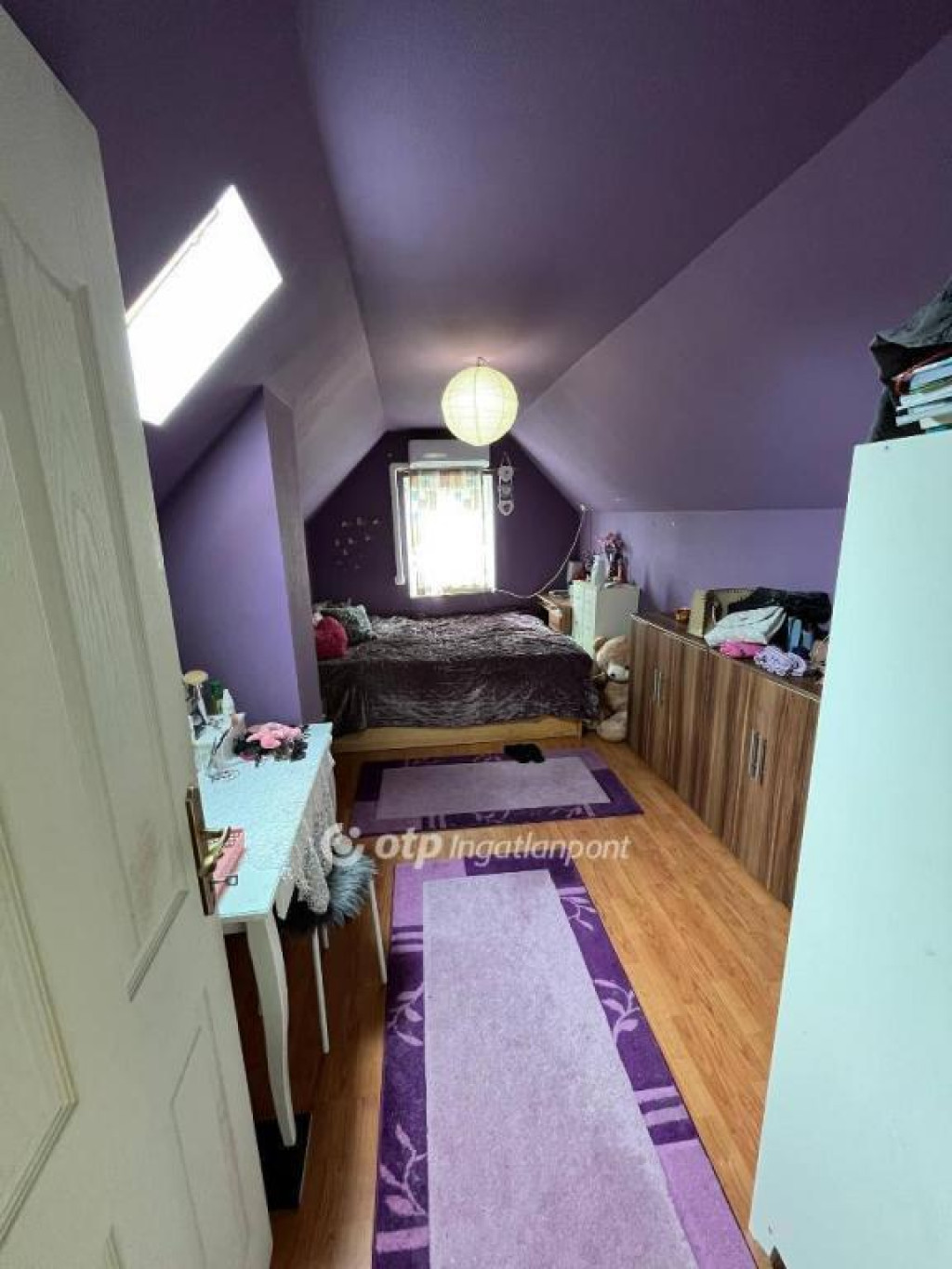 A tetőtér egy igényesen kialakított, belső lépcsőn keresztül közelíthető meg. A szint kellemes hőmérsékletéről egy három éve telepített Gorenje klímaberendezés gondoskodik.