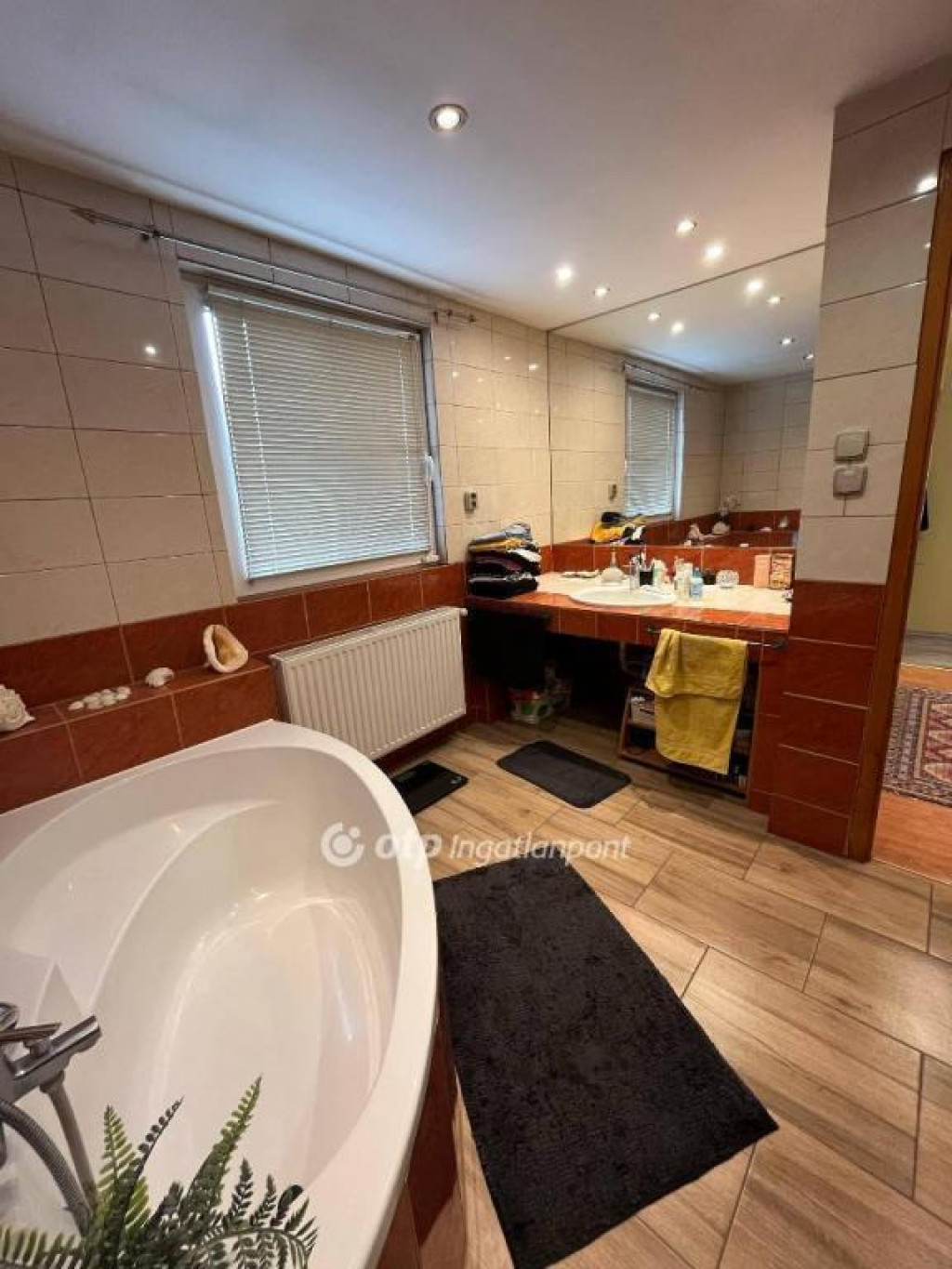 nagy méretű, ablakos fürdőszoba (11 m2), sarokkáddal és zuhanyzóval,