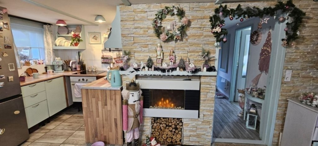 Hangulatos, könnyűszerkezetes családi ház nagy kerttel Erdőkertes Szent sarok településrészenErdőkertes Szent sarok, kedvelt, kertvárosias településrészén kínálunk megvételre egy szerethető, bensőséges hangulatú, könnyűszerkezetes családi házat. A környék csendes, rendezett, ideális választás mindazok számára, akik nyugodt lakókörnyezetre vágynak, mégis fontos számukra a jó megközelíthetőség és Budapest közelsége.A belső terek pasztell színekkel, romantikus részletekkel és praktikus elrendezéssel kerültek kialakításra. A nappaliamerikai konyha a ház központi tere, világos, barátságos hangulatú. A nappaliban jelenleg elektromos kandalló működik, amely kellemes, otthonos atmoszférát teremt.A ház bruttó alapterülete 93,4 m², valós, hasznos alapterülete 75,2 m². Állapota jó, az elmúlt időszakban műanyag, hőszigetelt nyílászárók cseréje, burkolatcserék, valamint külső homlokzati és tetőszigetelés történt. A fűtés elektromos rendszerrel és klímával megoldott.A földszinten előszoba, fürdőszoba WC-vel, dolgozószoba, ebédlő, valamint nappaliamerikai konyha található. A beépített tetőtérben további szobák kaptak helyet, meghitt, kuckós hangulattal. Az egyik tetőtéri szoba nagyobb része ferde síkú, hasznos alapterülete kb. 4 m², így vendégszobának, gyerekszobának vagy hobbitérnek ideális.Az ingatlan egy 742 m²-es, körbekerített telken helyezkedik el, kertre néző ablakokkal, délkeleti tájolással. A kert kiváló lehetőséget biztosít pihenésre, kertészkedésre, családi együttlétekre.A közművek rendelkezésre állnak: víz, villany és csatorna az ingatlanban, gáz telken belül.Közlekedés szempontjából kedvező elhelyezkedésű: a vasútállomás gyalogosan kb. 10-15 perc alatt elérhető, ahonnan Budapest Nyugati pályaudvar kb. 35-40 perc alatt megközelíthető. Helyi és helyközi buszmegálló szintén a közelben található. Autóval az M3-as autópálya gyorsan elérhető, Budapest menetidő forgalomtól függően kb. 30-35 perc.Az ingatlan jelenleg nem hitelezhető, elsősorban készpénzes vevők számára ajánlott.Ez az ingatlan ideális választás lehet mindazok számára, akik egy nyugodt, kertvárosias környezetben található, hangulatos otthont keresnek jó közlekedés mellett, és készpénzes vásárlásban gondolkodnak.