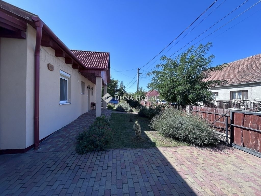 A ház teljesen körbejárható, a két kocsibeálló közül az egyik fedett, külön-külön kapuval.