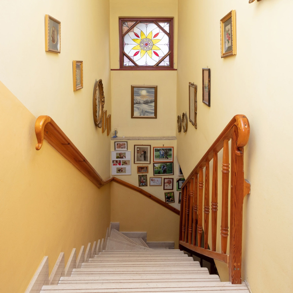 A három szintes, összesen 235 nm-es, két külön bejáratú lakásból álló ház 666 nm-es telken fekszik, főúthoz közeli csendes mellékutcában.