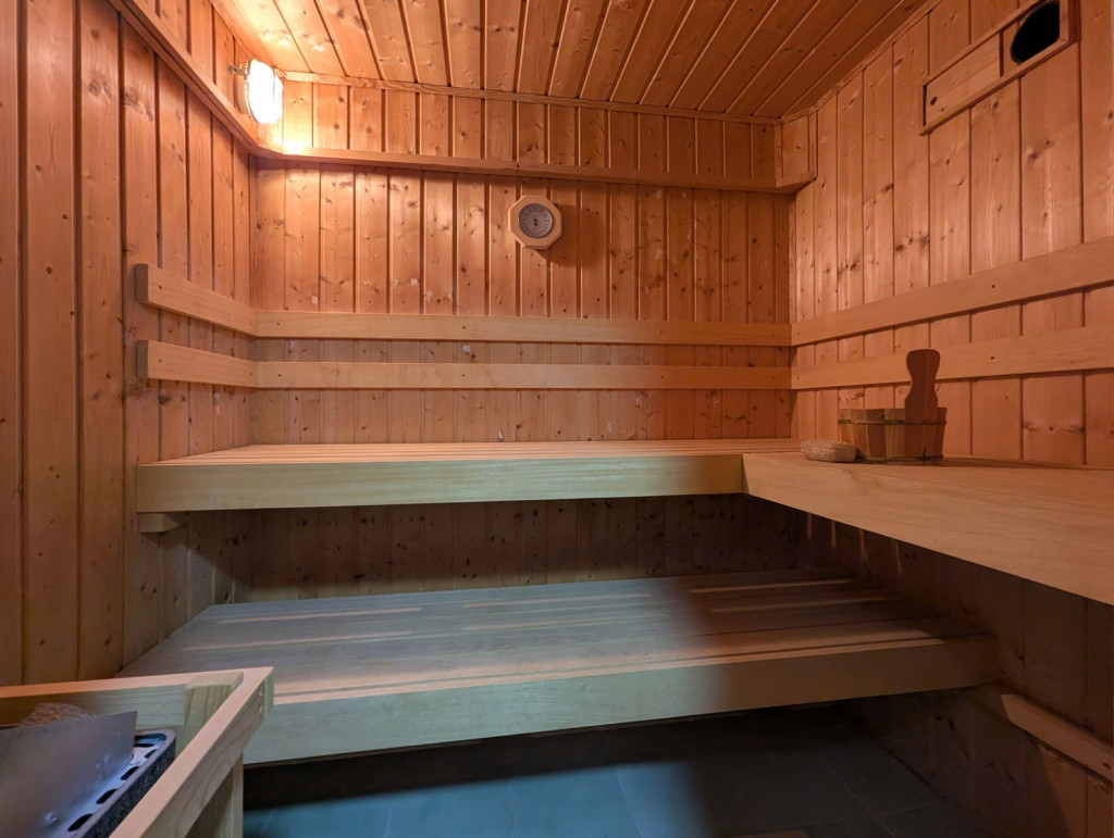 Ott egy jó hangulatú szobába érkezünk, mely egy üveges előtérhez/télikerthez csatlakozik, egy háló, kis konyha, fürdőszoba, valamint egy finn szauna fogad minket!