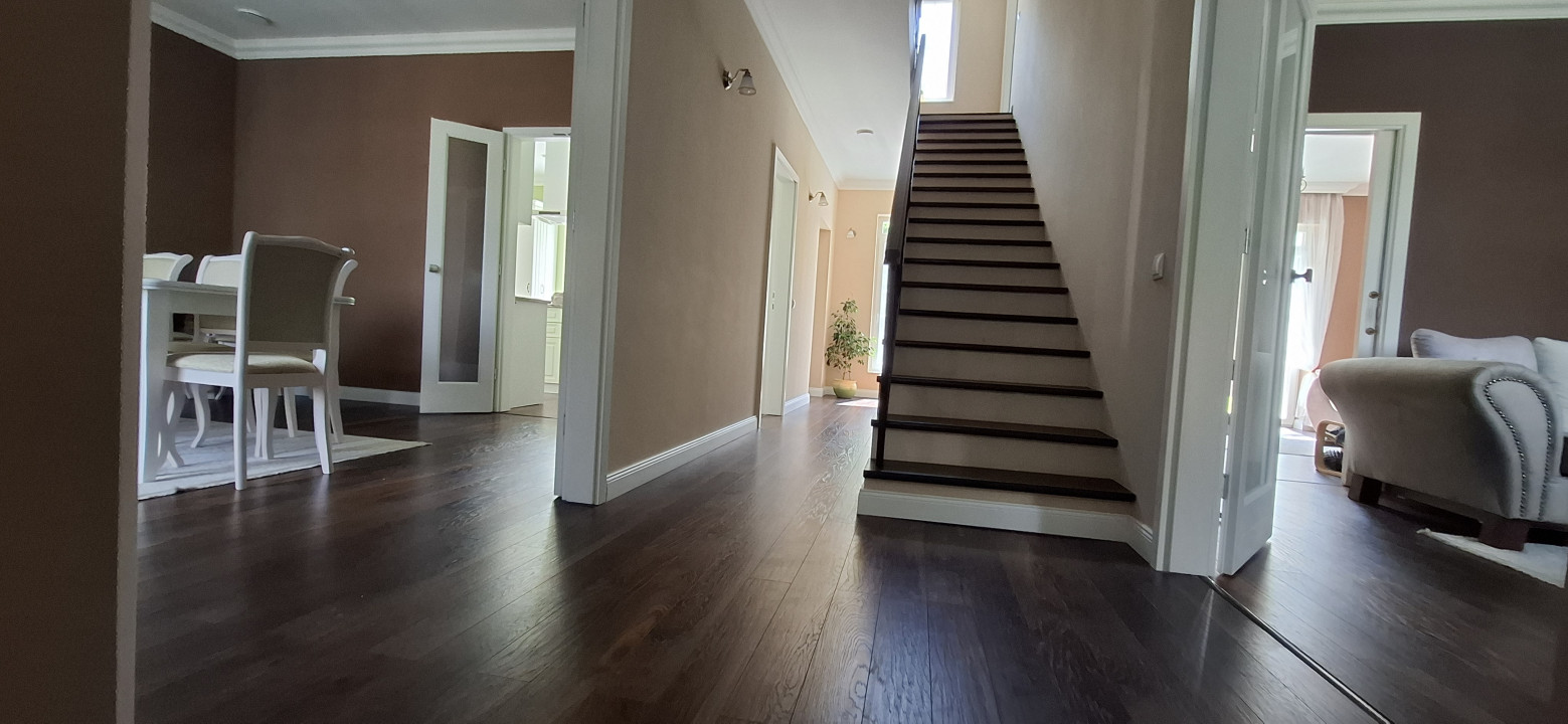 gondoskodik.A tervező harmonikus, meleg színekkel valamint funkcionális kialakításokkal tette lakhatóvá és igazán igényessé a házat.