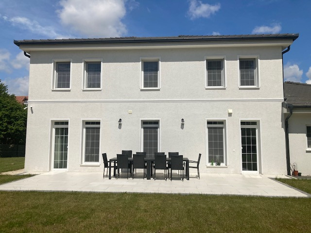 A 6 szobás ház a telek központi részén helyezkedik el, elegáns előkerttel és mind pihenésre,
