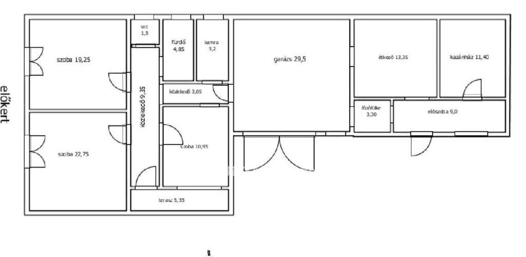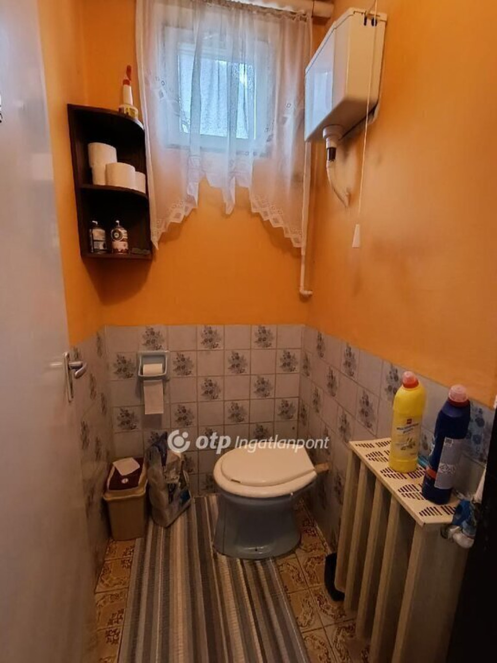 A ház belső elrendezése praktikus és élhető: két és fél szoba, fürdőszoba, külön WC és kamra áll rendelkezésre. A bejárat előtt egy hangulatos, fedett terasz kapott helyet, amely esős időben is kényelmes érkezést biztosít. A konyha külön épületrészben található, amely az udvarról közelíthető meg, és egy tágas előszobával, valamint étkezővel egészül ki. Itt kapott helyet a fűtésről gondoskodó gáz- és vegyes tüzelésű kazán is.