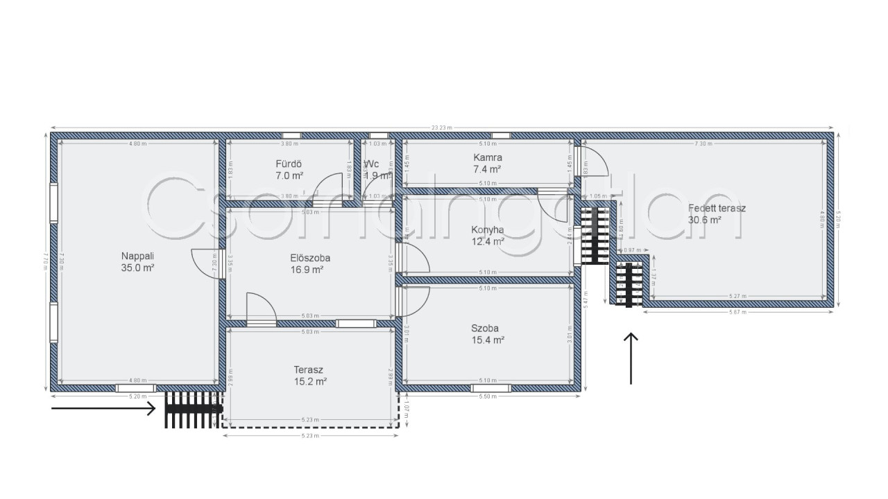 - kb. 30 m2 (kamra, konyha, szoba alatt)