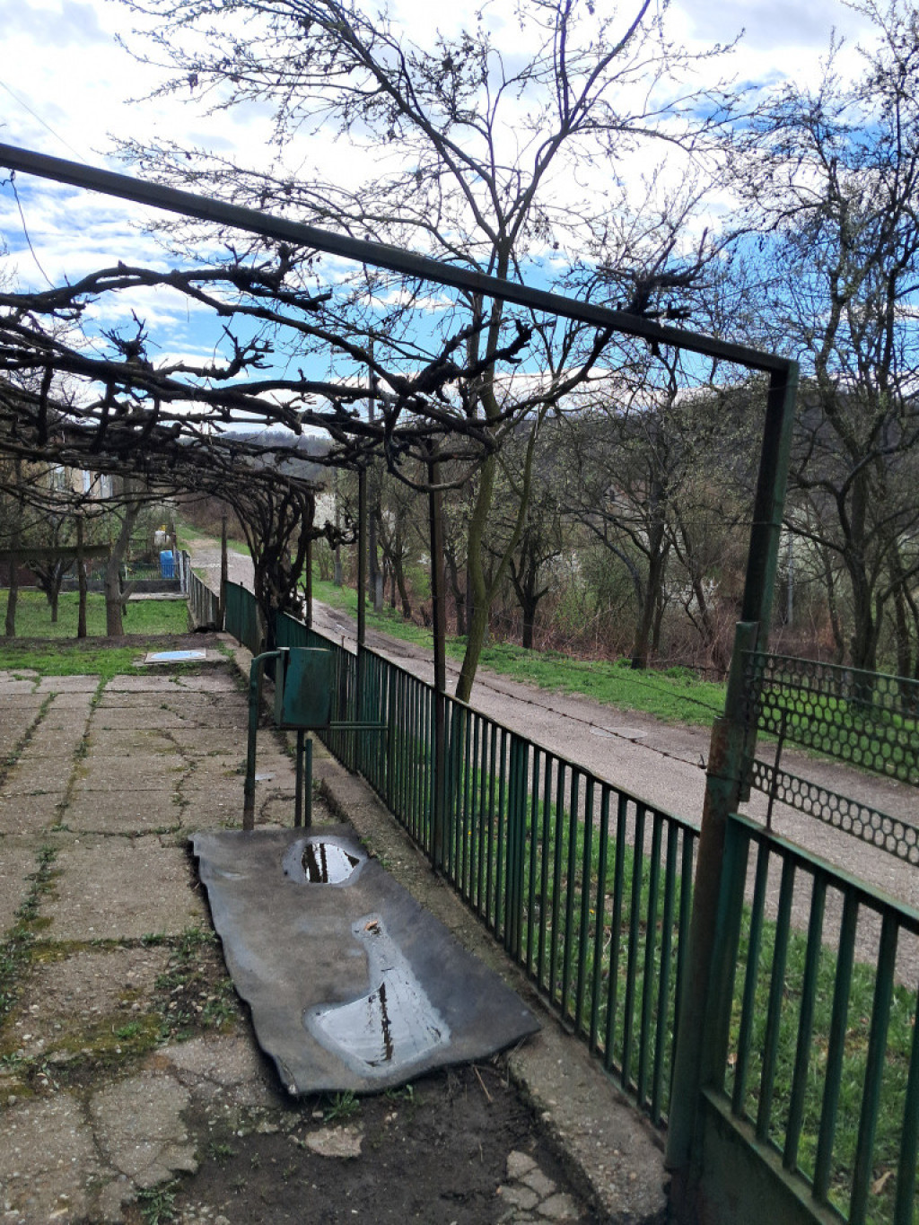 A telken-kertben termő gyümölcsfák és szőlő is található.