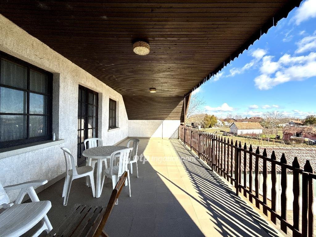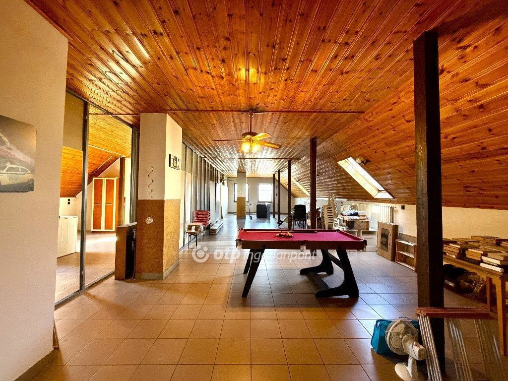 Helyiségek: 3 szoba, 2 félszoba, nappali, 2 fürdőszoba, 5 WC, 2 konyha étkezővel, 3 közlekedő, 4 tároló, kazán helyiség, előtér és hatalmas terasz, illetve 2 lakás