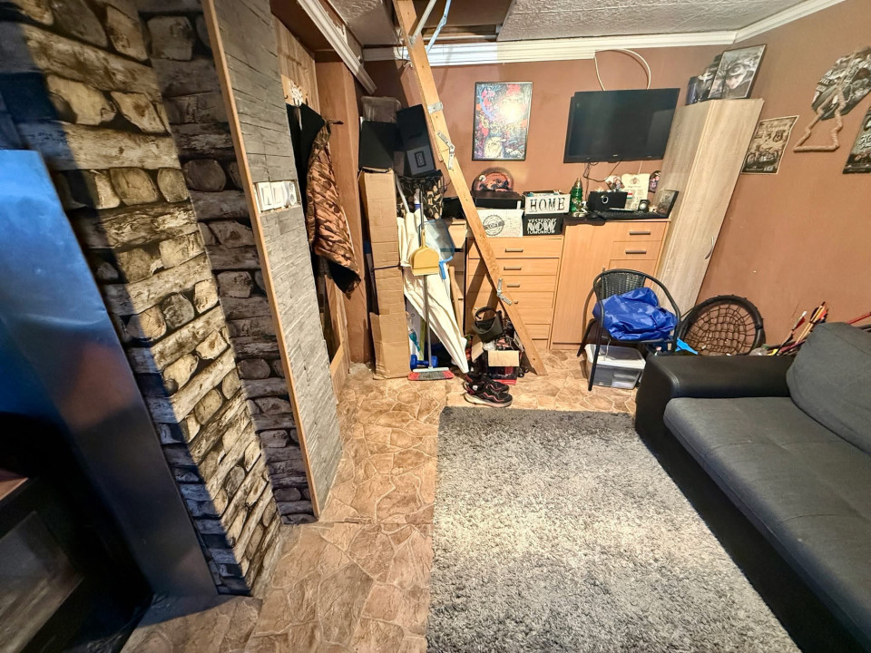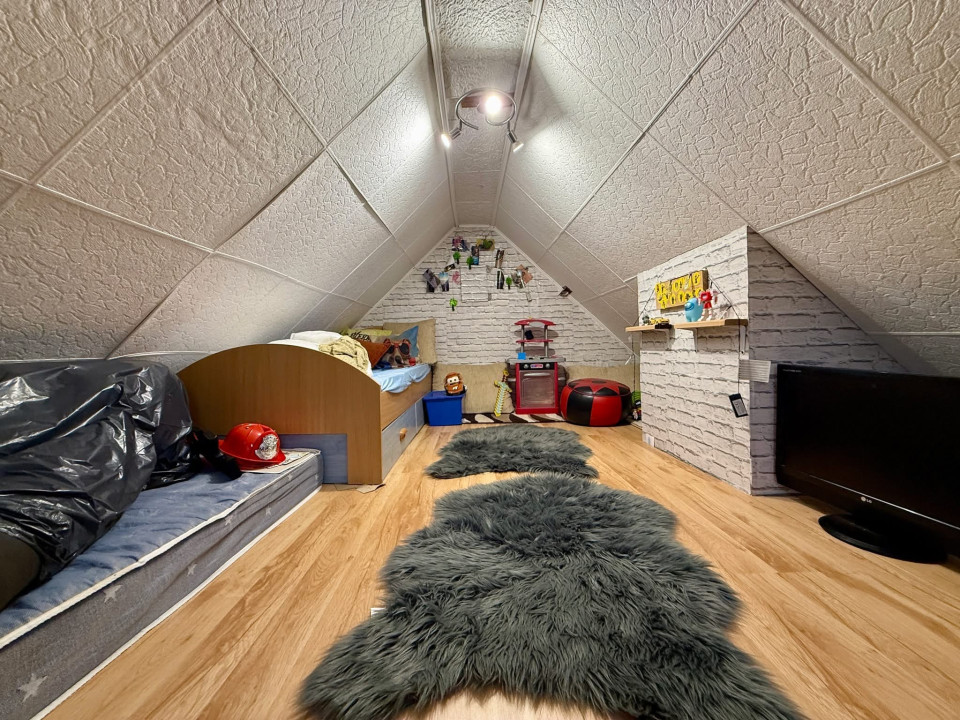 Az alsó szinten egy konyha, fürdő, étkező (pince), a jelenleg kívülről megközelíthető felső szinten egy nappali/szoba, a felette lévő, belső létrával elérhető padlástérben pedig egy hálószoba/fülke került kialakításra.