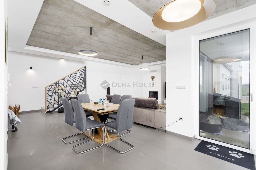 Az otthon nem csupán a legújabb építési technológiával büszkélkedhet, de a belső terének elrendezése is a praktikum és esztétikum tökéletes ötvözete.