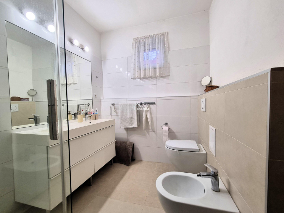 A nyílászárók műanyagok redőnyökkel és szúnyoghálókkal. A fűtés gázfűtés kondenzációs kazánnal, radiátoros hőleadással + padlófűtéssel + másik lehetőség a nappaliban található kandalló. A melegvíz ellátás bojleres. Az otthon egy nagy teljesítményű inverteres klímával felszerelt. A pince a hátsó melléképületek alatt található.