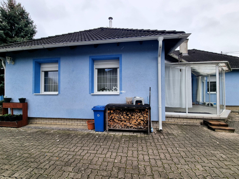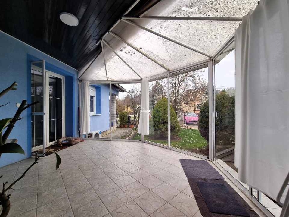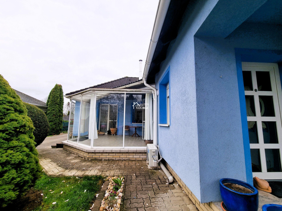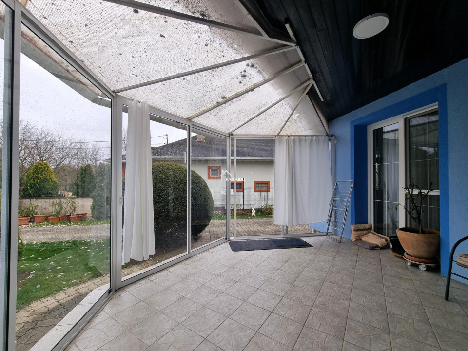 A HÁZ HELYISÉGEI: előszoba, 4 szoba, nappali étkezővel, innen nyíló konyha és spejz, zuhanykabinos fürdőszoba egy helyiségben a wc-vel / bidével, technikai helyiség, wc külön helyiségben, a nappaliból nyíló fedett télikert jellegű kiülős terasz mely zárható. Ennek területét nem számoltuk az ingatlan alapterületébe4