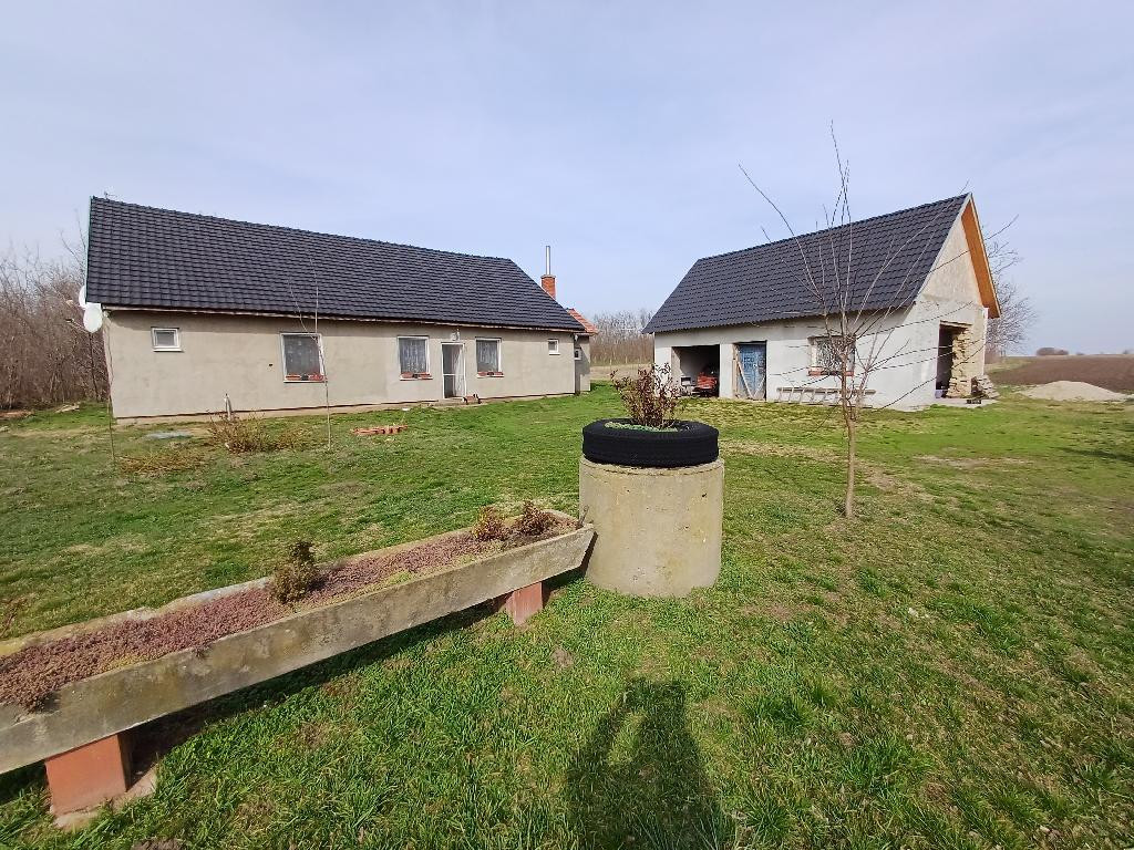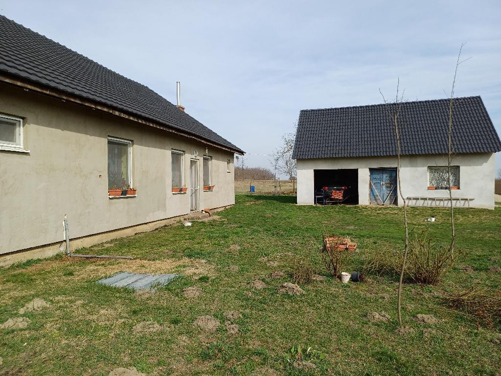 A lakóépület mellett egy istállóból kialakított dupla garázs, valamint egy erősen felújítandó, ólakból álló melléképület határolja a tanyaudvart.