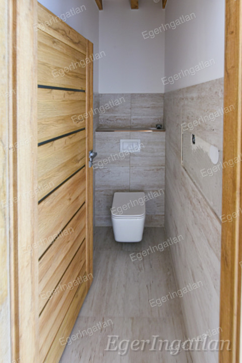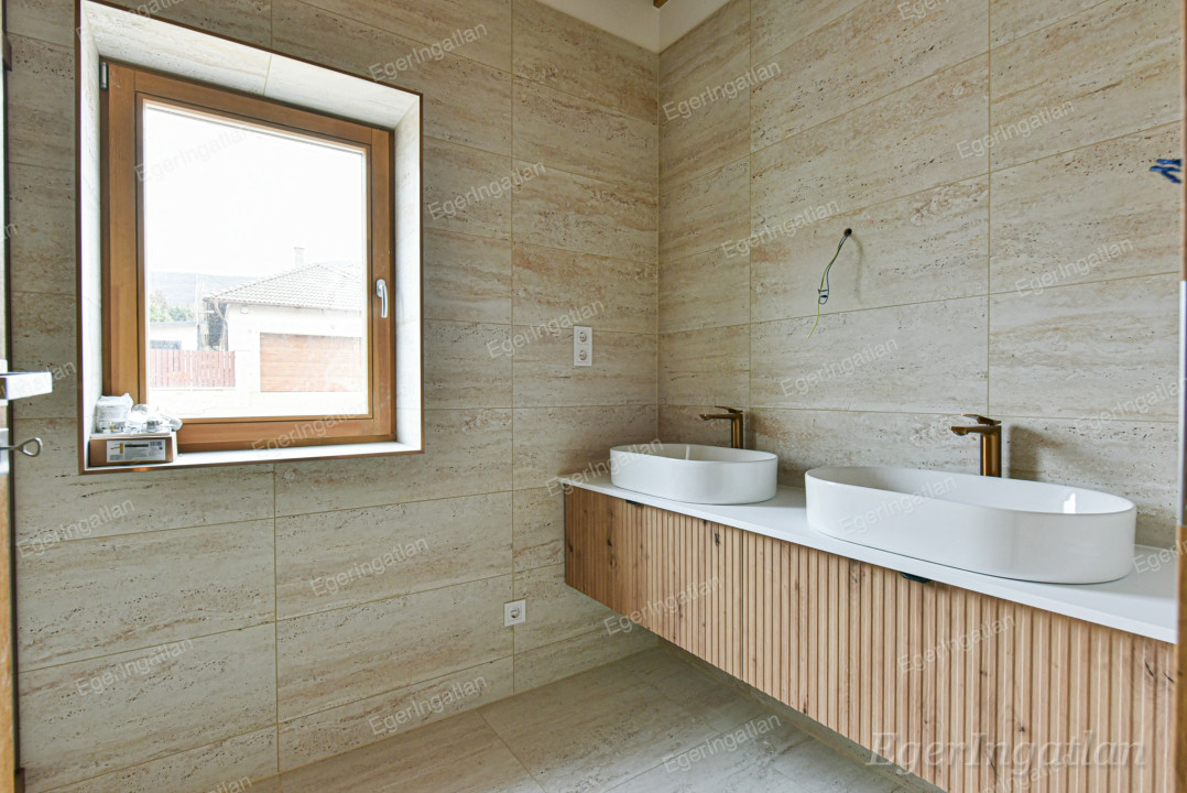 • Fürdő: épített zuhany (90×120 cm), dupla mosdó, WC: rejtett tartályos