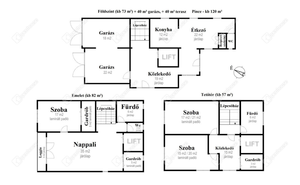 - a hálószobák laminált parkettásak, a többi helyiség járólapos