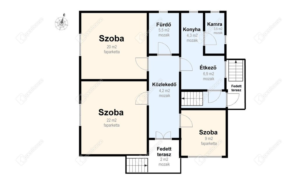 - 3 otthonos, világos szoba, továbbá konyha étkezővel, hűvös spájzzal, tágas fürdőszoba