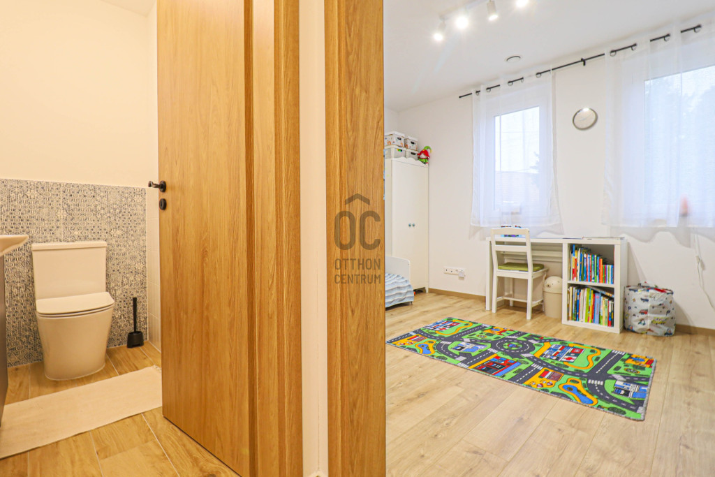 4 szoba (ebből 2 gyerekszoba és egy fürdőszoba szeparáltan, a harmadik szoba a szülői háló mellett)