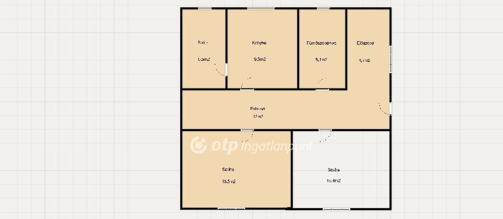 -a helyiségben : 2 szoba , hall , folyosó , konyha , spájz , fűrdőszoba+wc található.