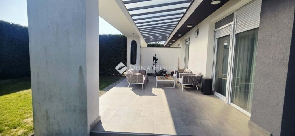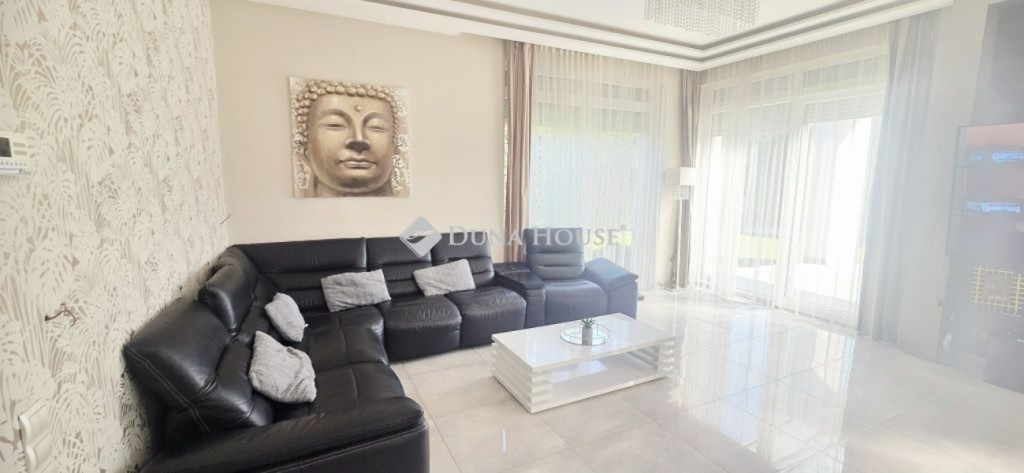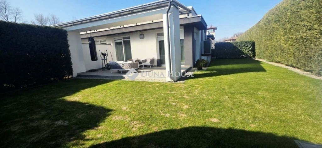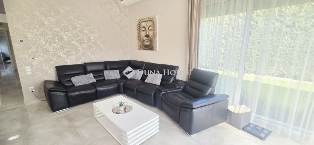 Luxus otthon Fótliget szívében ahol a stílus és a nyugalom találkozikEladó Fótliget lakópark egyik legjobb utcájában, a körúton egy kivételes adottságokkal rendelkező, prémium minőségben megvalósított ingatlan, amely minden részletében a luxust és a tudatos tervezést képviseli.Az épület külső megjelenése letisztult, minimalista, míg a belső terek belsőépítész által megálmodott glamour stílusban készültek elegáns anyaghasználattal, időtálló dizájnnal és harmonikus térszervezéssel.Főbb jellemzők: Rendkívül világos, napfényes terek, extra felülvilágítóval Privát kert, intim és nyugodt környezetben. Gyönyörű parkosított, rendezett kert. 3 külön nyíló szoba, + nappali Tágas, luxus fürdőszoba káddal és külön tusolóval 2 külön WC Egyedileg tervezett, beépített szekrényekMűszaki tartalom kompromisszumok nélkül: Gáz + hőszivattyús rendszer, teljesen átkapcsolható gázüzemre. Fal, mennyezet, padló fűtés - hűtés. Mennyezeti és padlófűtéshűtés Modern szellőztető rendszer Motoros redőnyök minden ablakon Kamerás kaputelefon Alacsony rezsi: kb. 30.000 Ft / hóBiztonság & környezet: Sorompóval védett, zárt lakópark 24 órás biztonsági szolgálat Gondozott, presztízsértékű környezetEz az ingatlan ideális választás azok számára, akik nem szeretnének kompromisszumot kötni sem a minőség, sem az esztétika, sem a biztonság terén. Egy valódi otthon, amely egyszerre modern, elegáns és élhető. Megtekintés egyeztetés alapján.Független hitelügyintézéssel állunk rendelkezésükre.