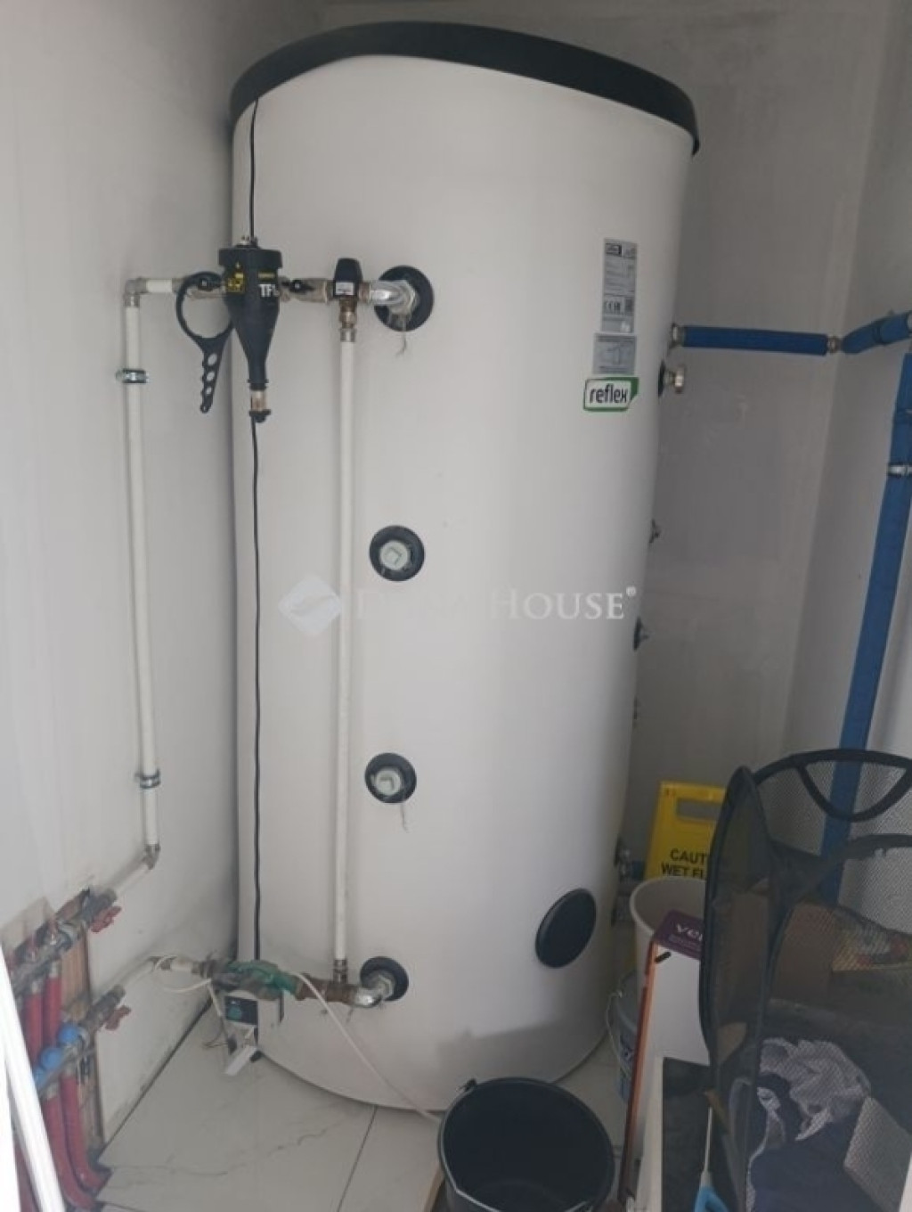 A 38 cm-es Porotherm tégla szerkezetű ház 10 cm-es külső szigetelést kapott, műanyag nyílászárókkal, redőnnyel, és szúnyoghálóval felszerelve, betonfödémes kialakítással. A tető alatt 25 cm-es kőzetgyapot szigetelés gondoskodik a kedvező hőszigetelésről. Fűtését egy vegyes tüzelésű Totya kazán látja el, 1 000 literes puffertartállyal kiegészítve, míg a meleg vizet villanybojler biztosítja. A fűtés a földszinten padlófűtés, a tetőtérben pedig inverteres klímákkal megoldott, továbbá a földszinti nappaliban is található klíma berendezés.