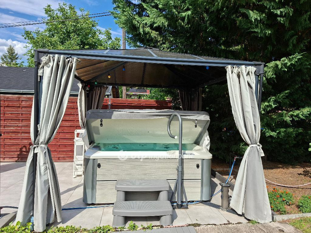 Rendezett szép kert, ahol egy jakuzzit is találunk - wellness nap bármikor.