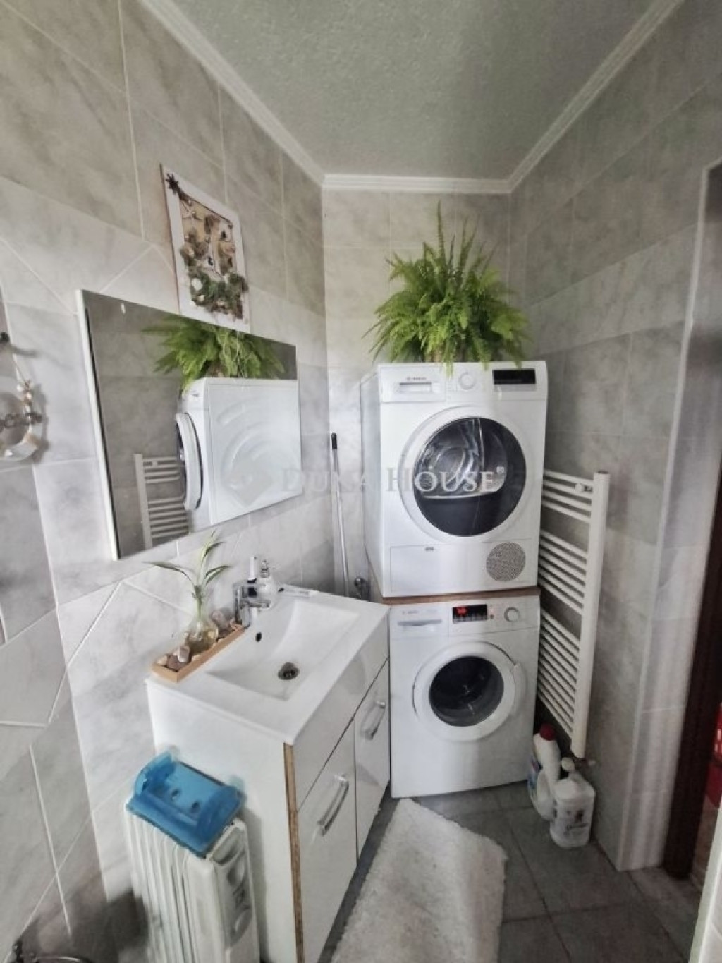 Fűtés: gázkazán, földszinti padlófűtéssel, klimatizált a nyári melegre