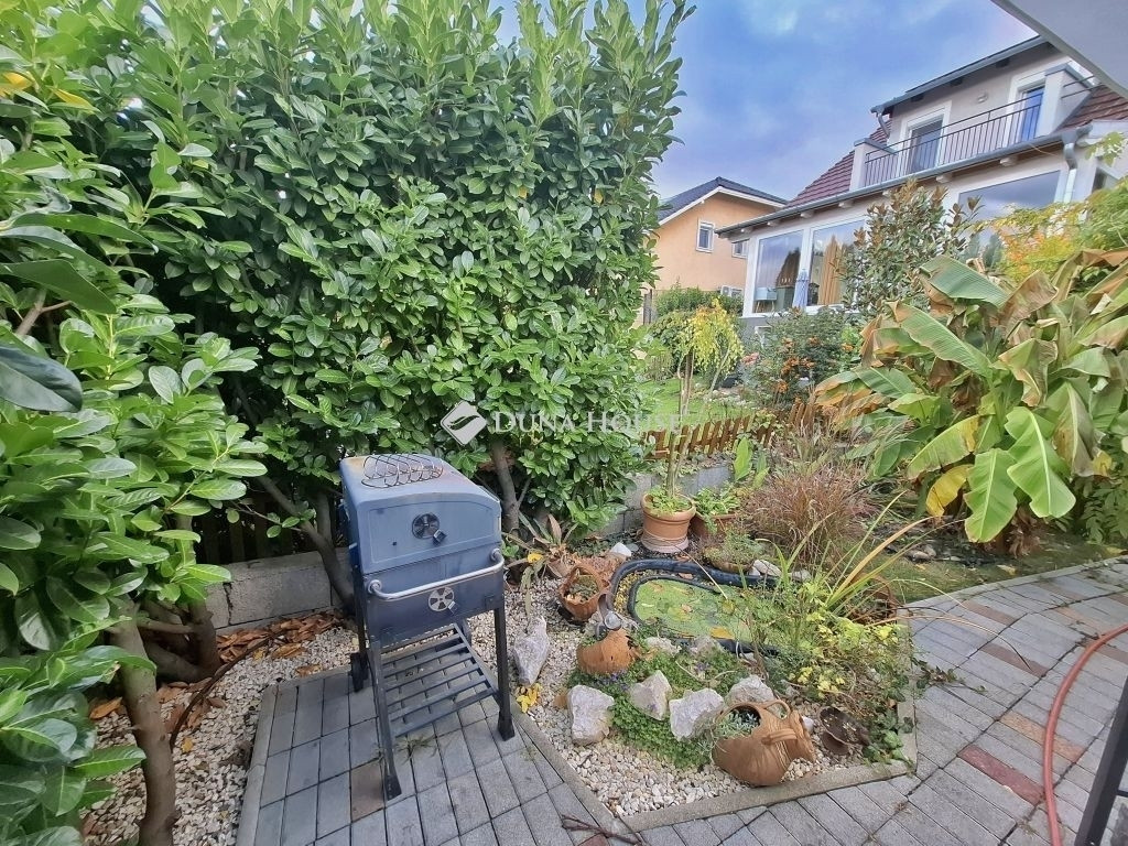 Kert: 130 m² parkosított kert kerti tóval és pavilonnal, ideális családi és baráti összejövetelekhez