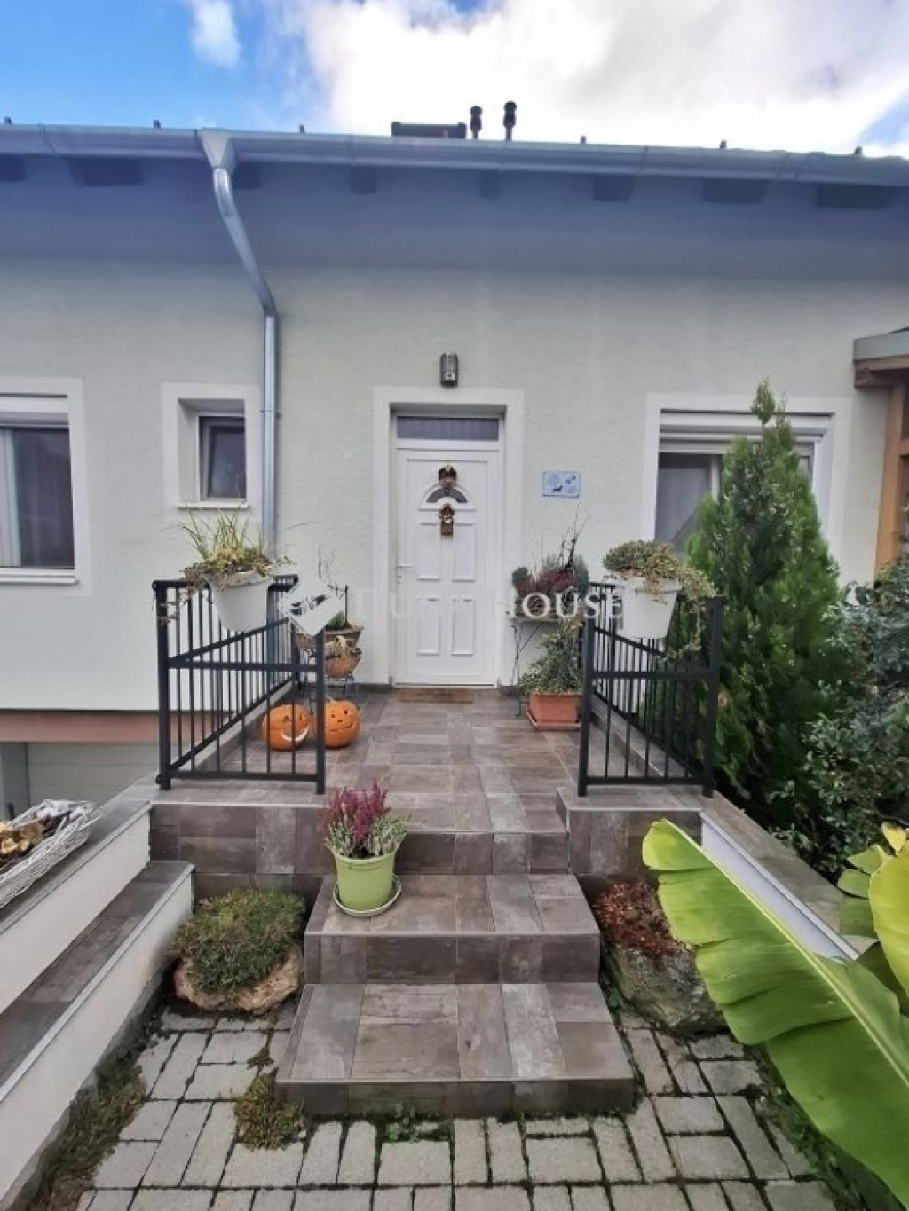Extrák: fedett teremgarázs 2 autó számára, 3 tárolóhelyiség, közvetlen kijárás a saját kertrészre, utcafronti parkolási lehetőség
