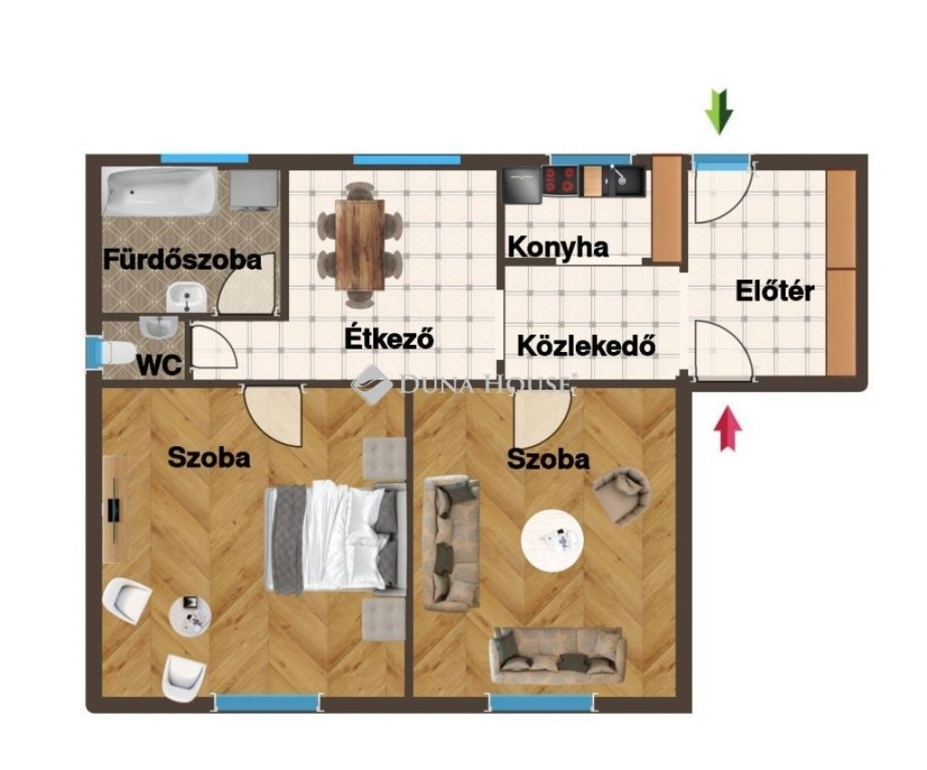 egy földszinti, külön bejáratú lakás (kb. 62 m²),