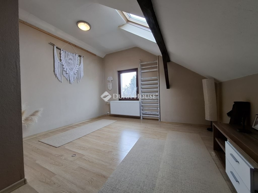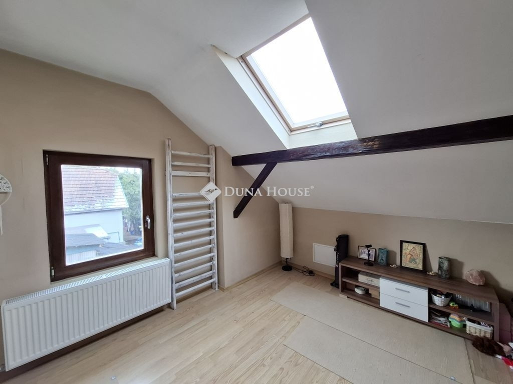 valamint egy külső lépcsőn megközelíthető, tetőtéri, önálló lakás (kb. 32 m²) található.