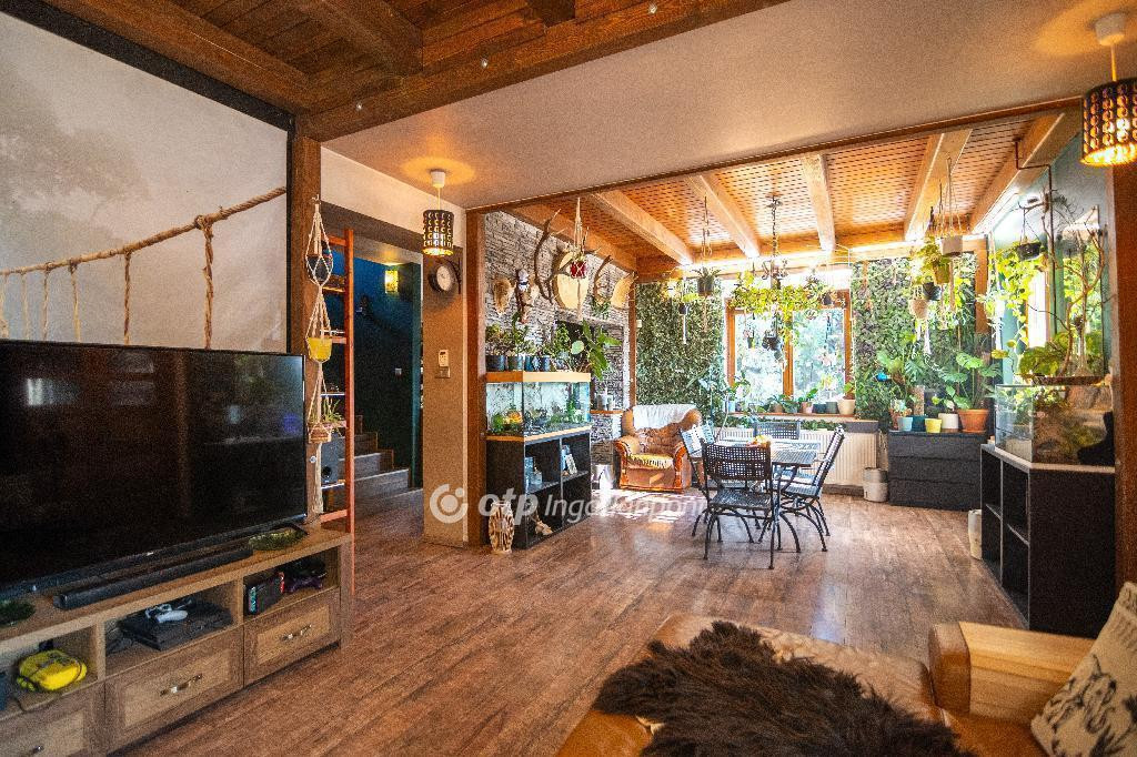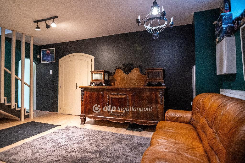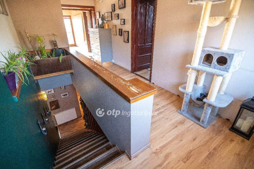 A középső szinten a gyönyörűszép nappali - melynek ékessége kétség kívül a különleges kandalló - mellette a napfényes étkező, konyha, kamra, tovább haladva a közlekedőn pedig egy dolgozó szoba, fürdő illetve mosdó található, a teljesen leválasztott előtérbe pedig a közel 40 m-es teraszról léphetünk be.