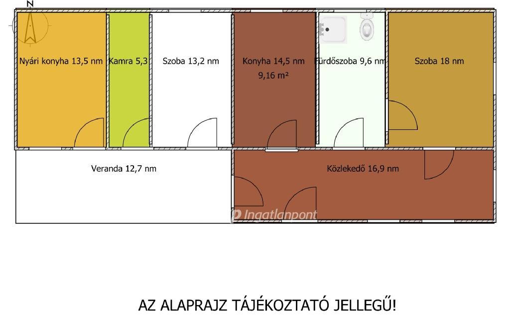 A ház felújítását a tulajdonos megkezdte, de az élete másfelé sodorta, így azt már az új tulajdonos alakíthatja kedvére. Az 1013 nm-es telken található 91 nm-es ingatlanban 2 szoba, konyha, fürdőszoba, közlekedő, nyári konyha és kamra került kialakításra. Az otthon melegéről kályha gondoskodik, a melegvizet bojler szolgáltatja. Az ingatlanban felújításra került a villamos hálózat, illetve a csatornázás miatt a fürdőszoba is kiépítésre került. A viszonylag nagy telek és az ólak alkalmat adnak háztáji gazdálkodásra, a városszéli csend pedig nyugalmas életvitelt enged. Kisebb ráfordítással nyugalmas kis otthon varázsolható belőle. A falak nincsenek felázva, a házban egy beázás található amelyért egy rentiens cserép a felelős.