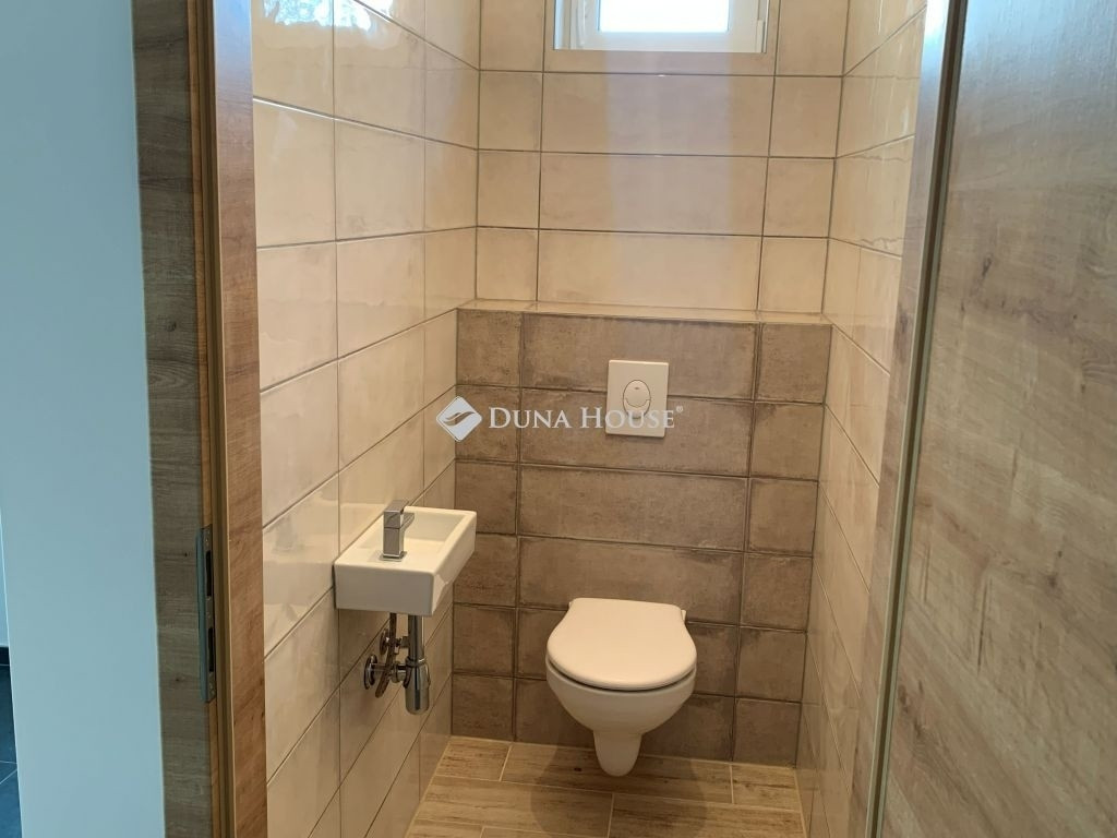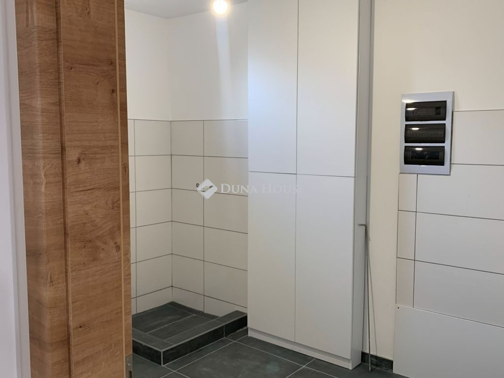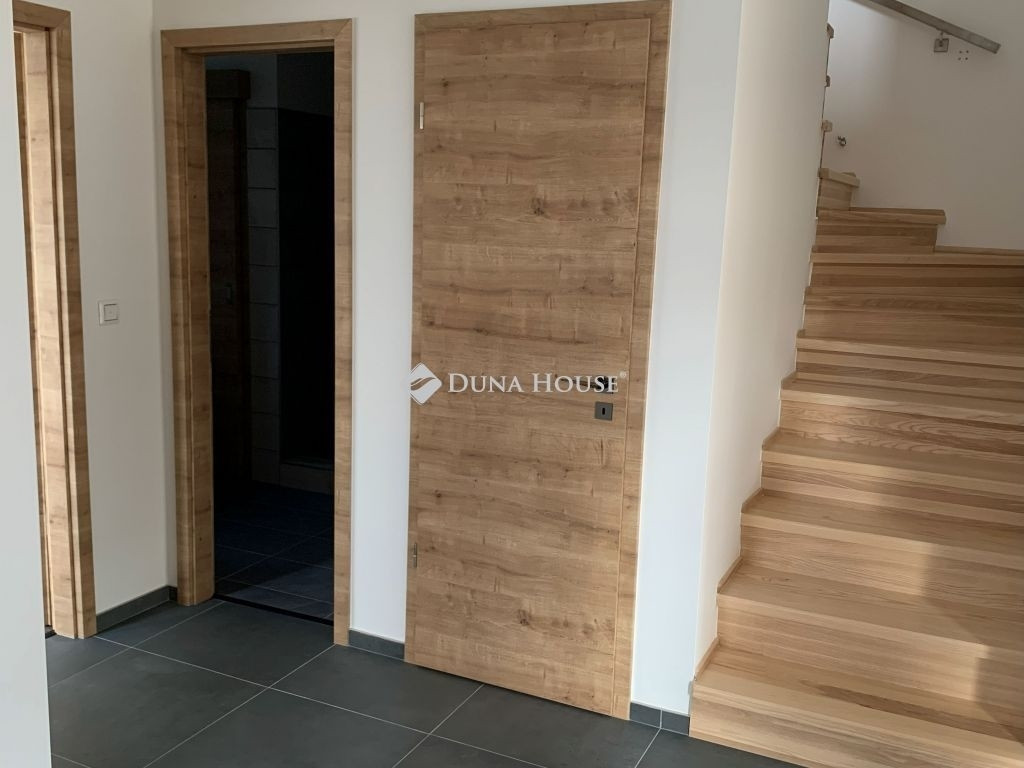 A konyha egyedileg gyártott, minőségi bútorzattal és beépített gépekkel készült. Az emeleti hálószobák redőnnyel felszereltek, a háztartási helyiségből pedig feljárat nyílik a közel 60 m²-es padlástérbe, amely kiváló tárolási lehetőséget biztosít. A 19 m²-es, WPC burkolatú terasz télen-nyáron kellemes pihenőpontot kínál.