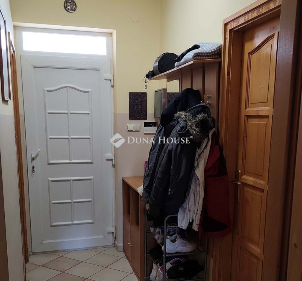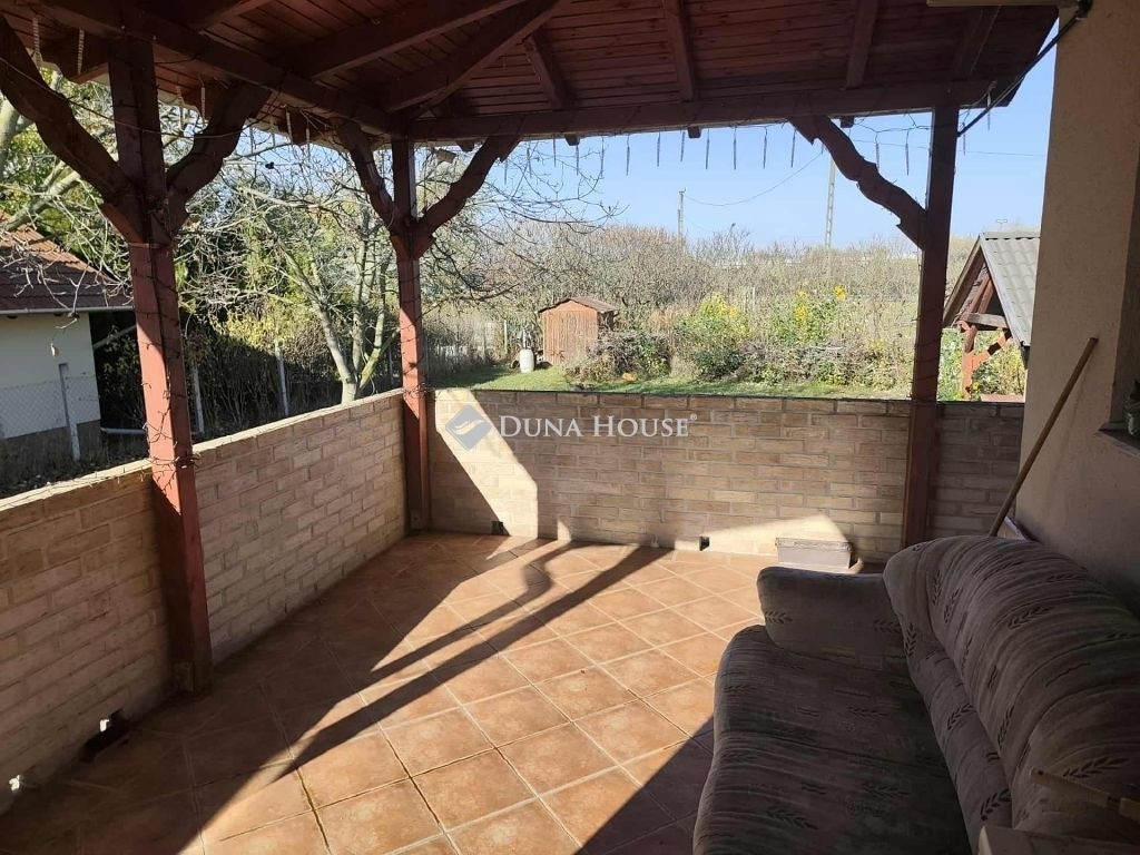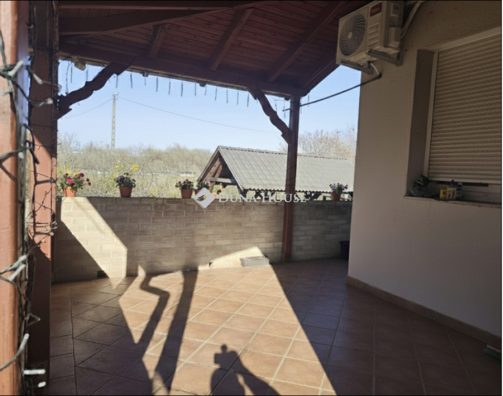 A fedett terasz tökéletes reggeli kávés vagy esti pihenős helyszín, a gondozott udvar pedig garázzsal, fedett kocsibeállóval és külön tárolóval teszi igazán praktikussá a mindennapokat.