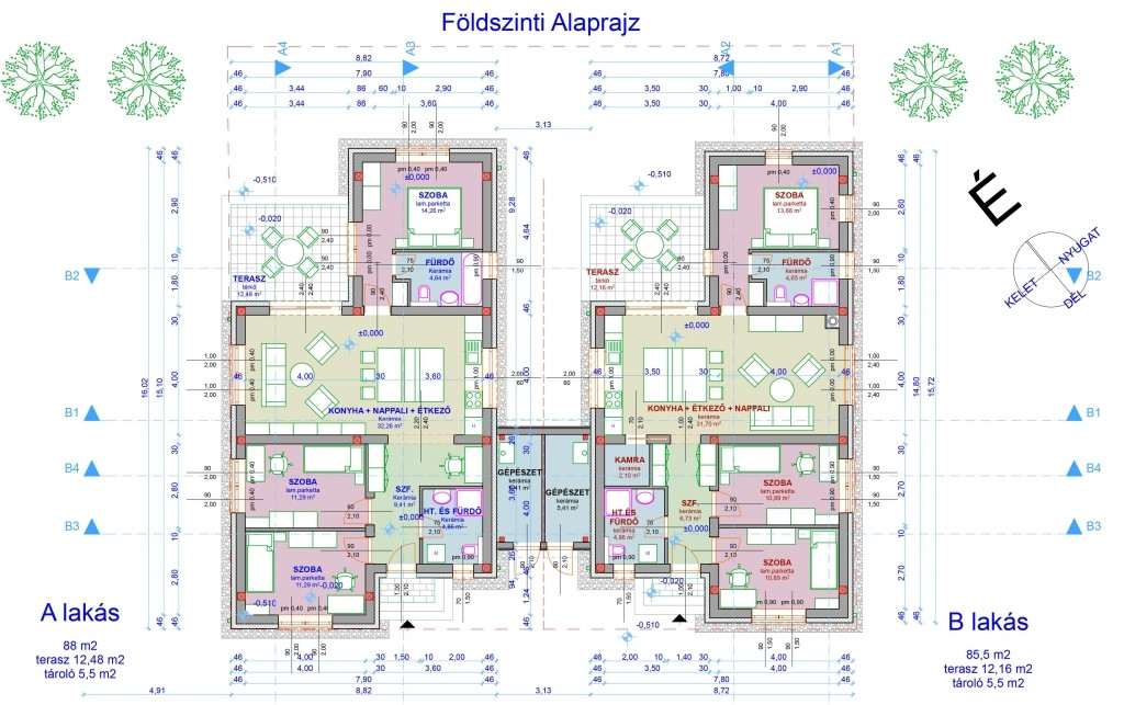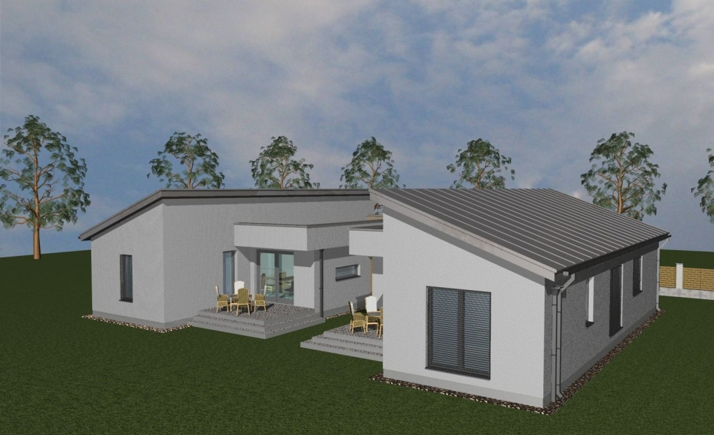 A ház területe bruttó 110 nm / nettó 85,5 nm, plusz fedett terasz (12,2nm) és gépészeti helyiség (5,41 nm).