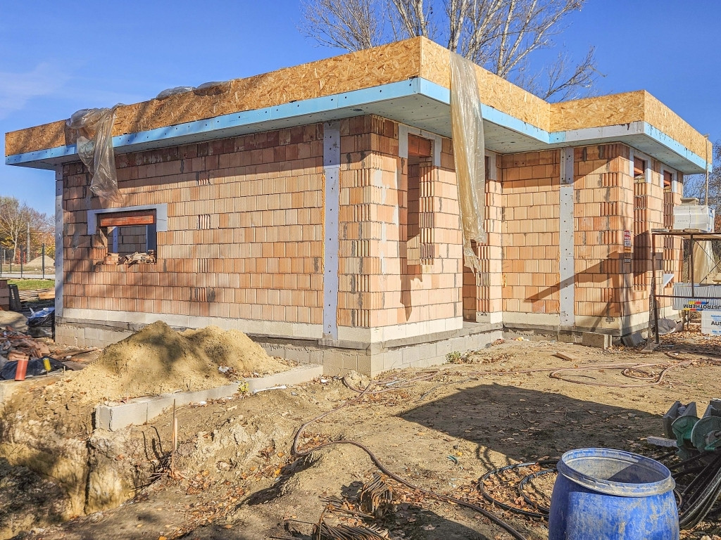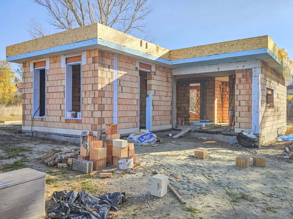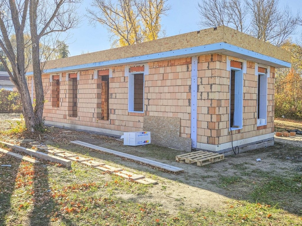 A ház falazata tégla, amelyre 15 cm grafitos EPS (hungarocell) hőszigetelés kerül.