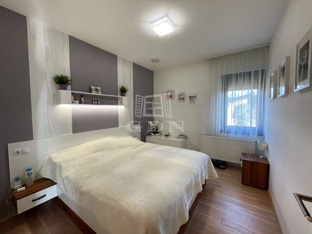 A mai energiatakarékossági elvárásoknak megfelelő épület 30-as porotherm téglából épült, 16 cm-es külső szigeteléssel, a födém 30cm-es és az aljzat 12cm-es szigetelést kapott. A minőségi műanyag nyílászárók háromrétegű üveggel, redőnnyel, szúnyoghálóval szereltek. Minden nyílászáró körbe extra toktoldóval került beépítésre. A nagyobb üvegfelületeknél és a tetőtéri ablaknál a redőnyöket elektromos motor mozgatja.