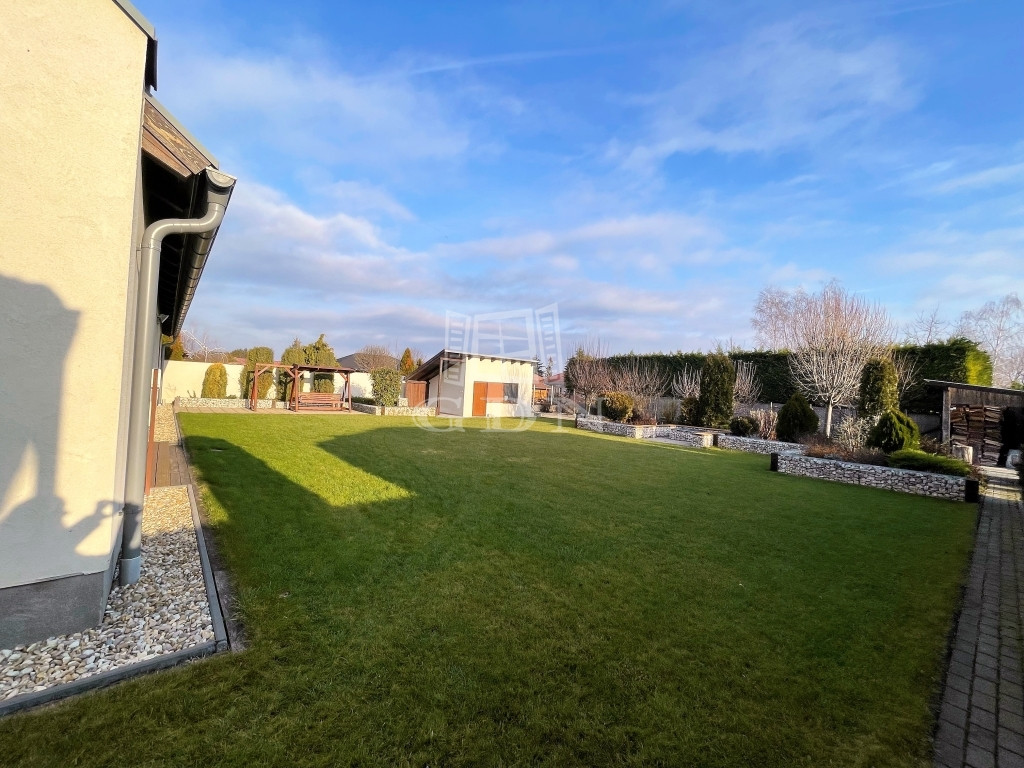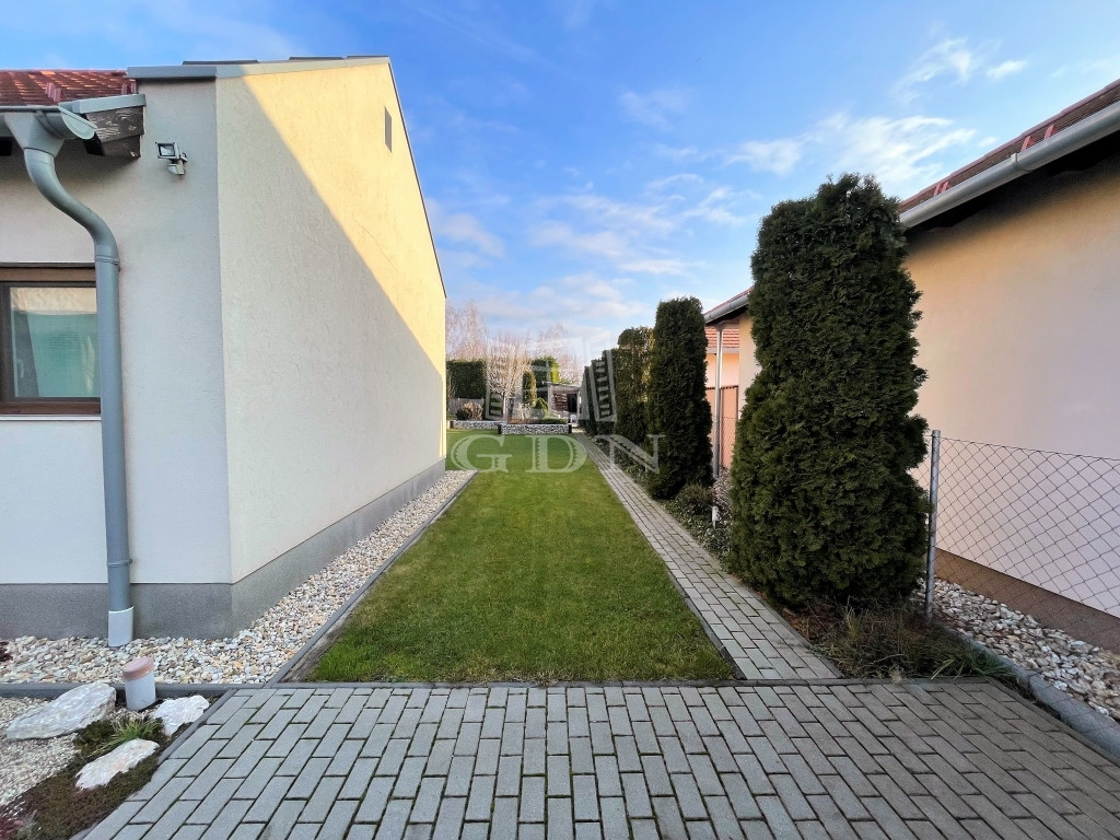 Eladó Gárdony-Dinnyésen, a Velencei-tó szomszédságában eladó egy EGYSZINTES, ÖSSZKOMFORTOS, 275 nm-es családi ház 1265 nm-es, ÖSSZKÖZMŰVES, parkosított telken, ÚJÉPÍTÉSŰ ÖVEZETBEN. Az IMPONZÁNS, NAGY LÉGTERŰ, VILÁGOS belső terekhez jelentős üvegfelület társul, ami egész nap természetes fényt biztosít.