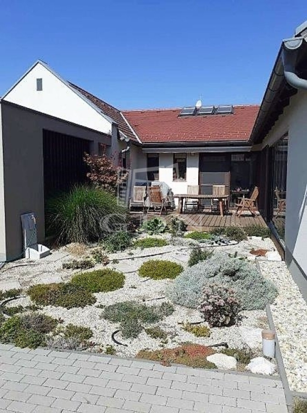 A KERT: mindenki számára önfeledt kikapcsolódást nyújt, tűzrakó hellyel, fúrt kúttal, 6 körös öntöző rendszerrel. A kb 300m2-es füves területre vakondháló került. A gabion fallal elválasztott területen 4 magaságyás (csepegtetővel), 4 gyümölcsfa, hársfa, szőlősor, málna, ribizli, egres bokor biztosítja a nyári vitaminbevitelt.
