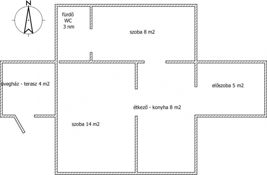 A területszámítás az épület nettó területének és az üvegterasz 50%-ának figyelembe vételével került rögzítésre.
