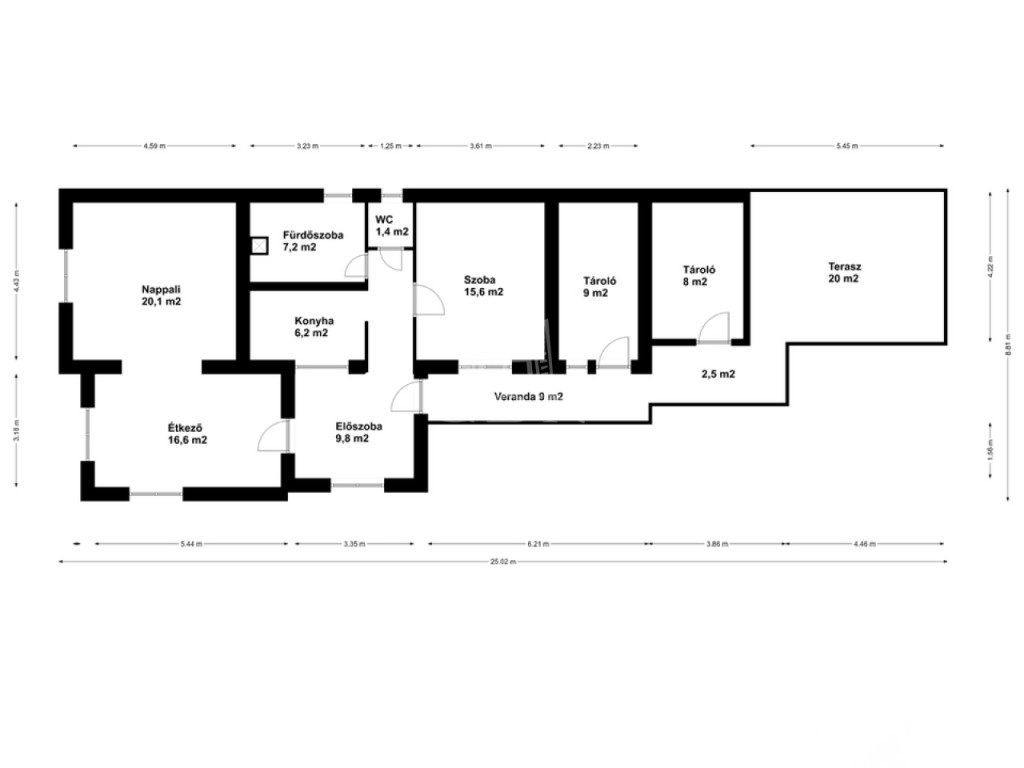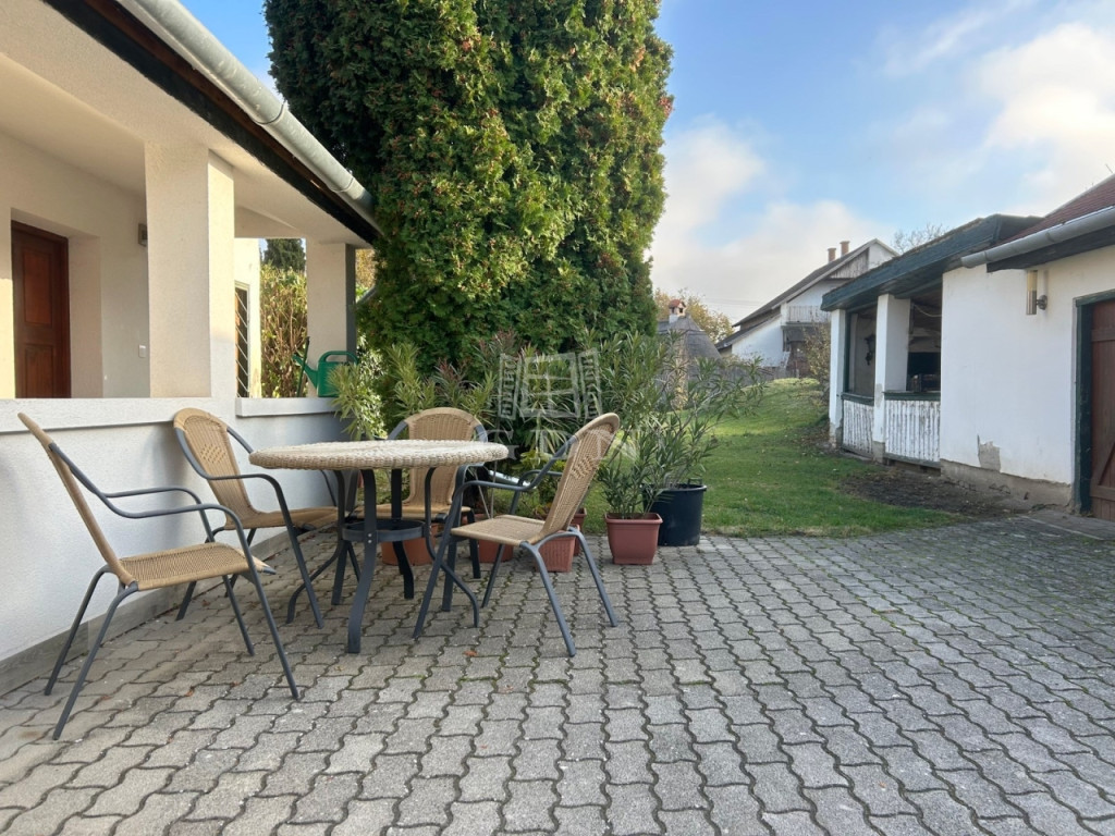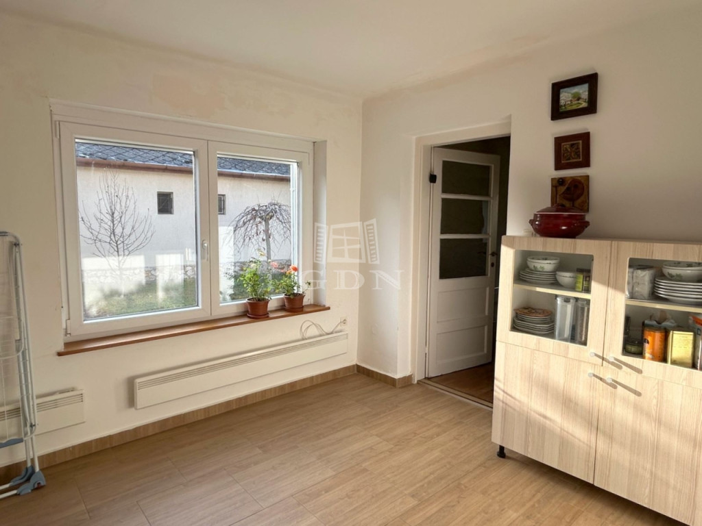 A ház 37 m2-es nappali-étkező, előszoba-étkező, konyha, fürdőszoba, wc, közlekedő helyiségekből áll. További hálószoba leválasztással kialakítható, illetve a verandáról nyíló jelenleg tároló funkciót ellátó helyiség is alkalmas lehet szoba kialakítására. Az épülethez csatlakozik egy tároló és egy 20 m2-es terasz, illetve a ház mellett található egy külön épület, fedett kiülő és pince. A kert gondozott, öntözése ásott kútból lehetséges. Ár: 82 MFt ...TOVÁBBI, TÖBBEZRES INGATLAN KÍNÁLAT: - GDN azonosító: 389610