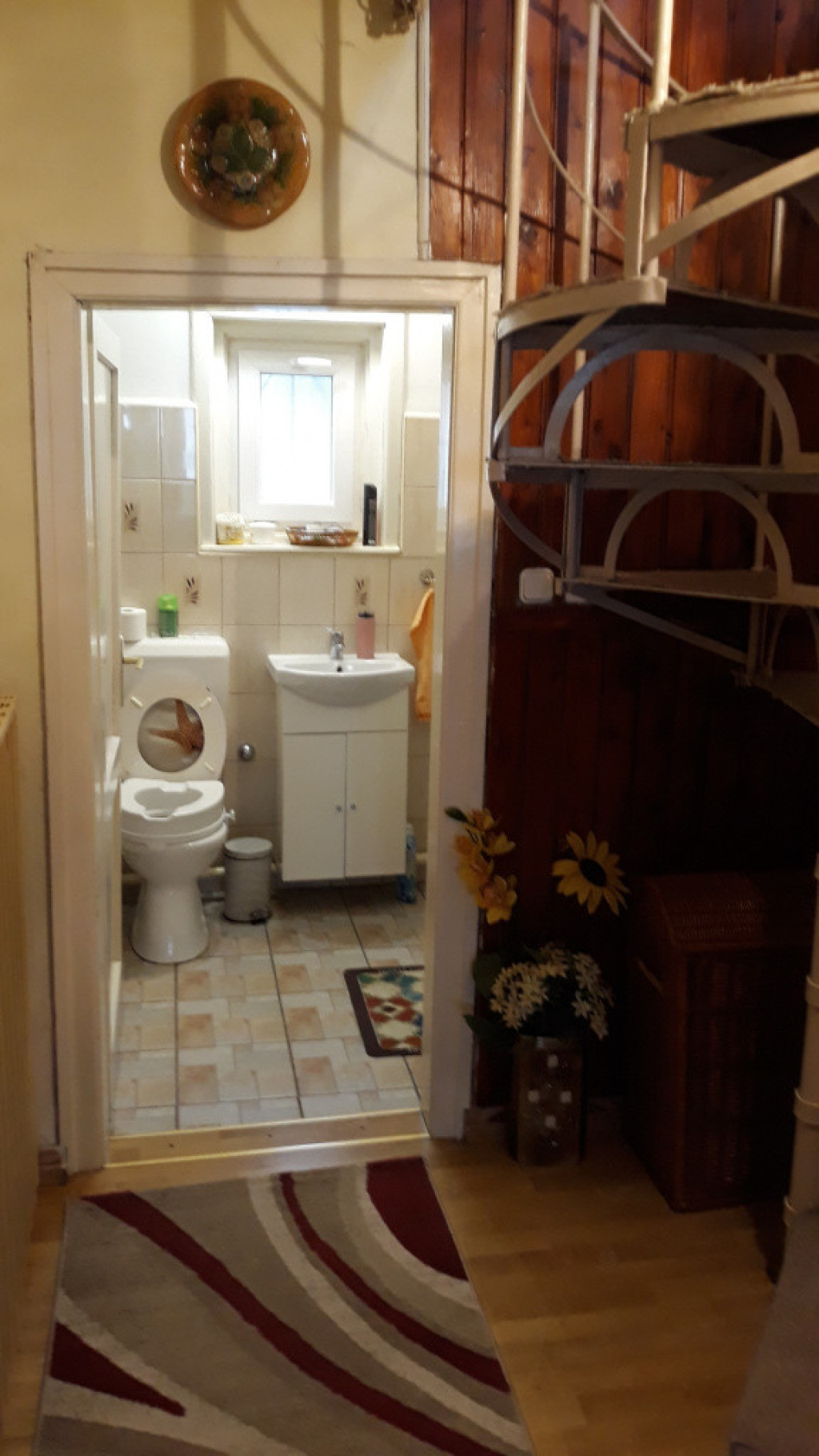 A fürdőszoba felújított, zuhanyzós, új Ariston villanybojlerrel.