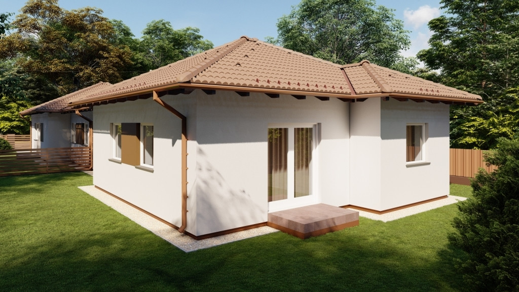 Műszaki leírása: Az épület NF 30-as téglából épül, 15 cm-es külső (dry-vit) szigeteléssel, a tető fa födémes (nem terhelhető), a tető barna színű cseréppel lesz borítva. 3 rétegű, 5 légkamrás, fehér műanyag nyílászárók kerülnek beépítésre, bejárati ajtó 5 ponton záródó.