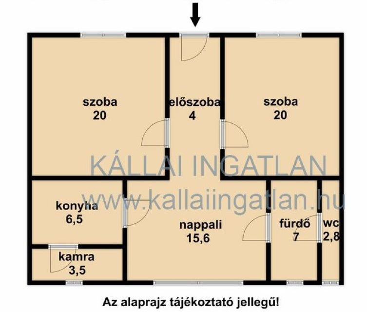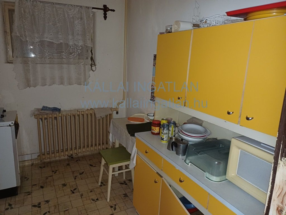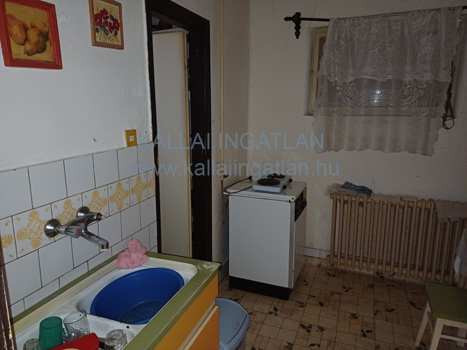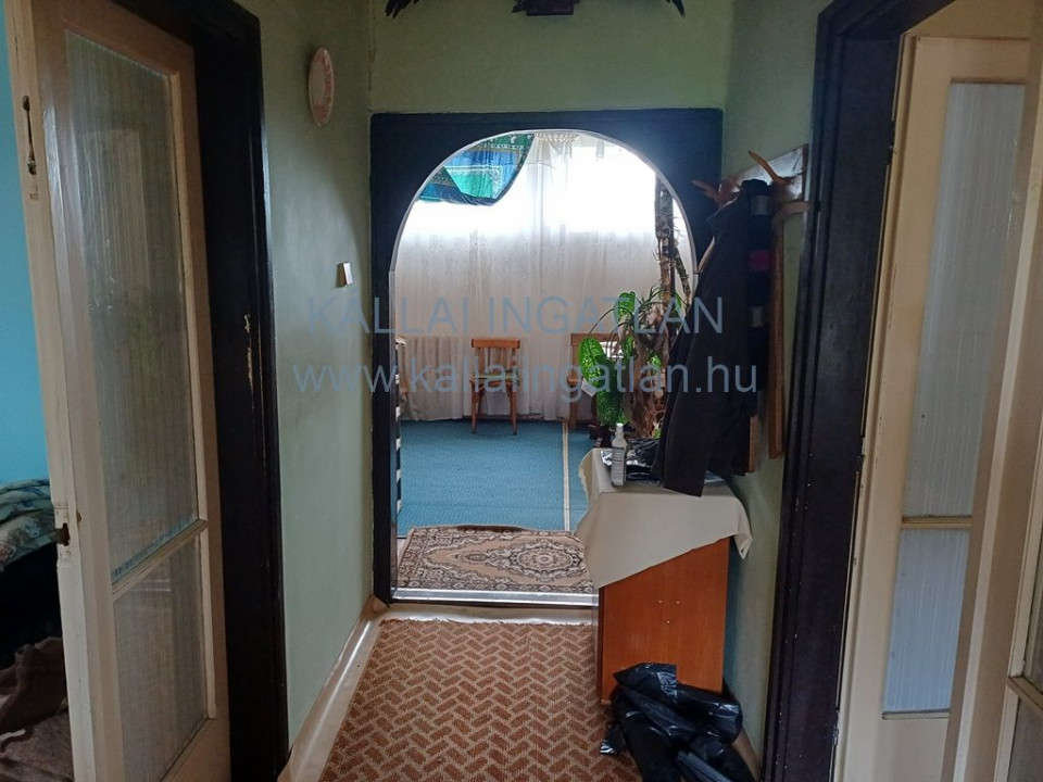 Elosztása: előszoba, nappali, 2 különnyíló szoba, konyha, kamra, fürdőszoba, WC külön helyiségben. A ház alatt pince is található.