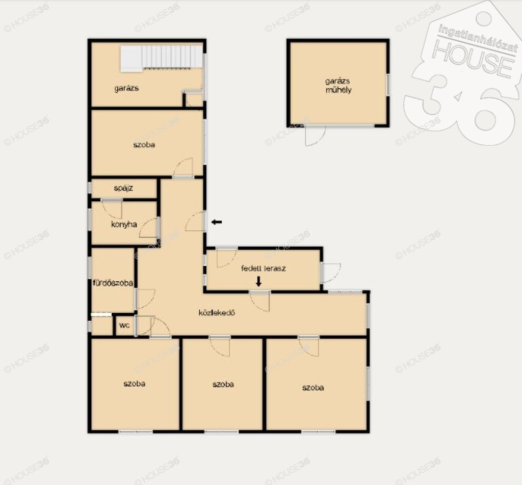 Az ingatlan részét képezi: garázs, tároló és egy kb. 40 m2-es műhely is.