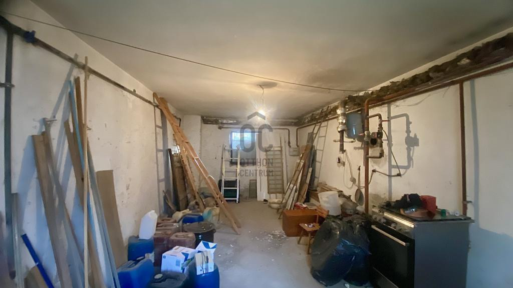 A lakótérből is megközelíthető alagsor kb. 60 m²-es, ahol több tárolóhelyiség és garázs kapott helyet — ideális megoldás akár barkácsoláshoz vagy tároláshoz.