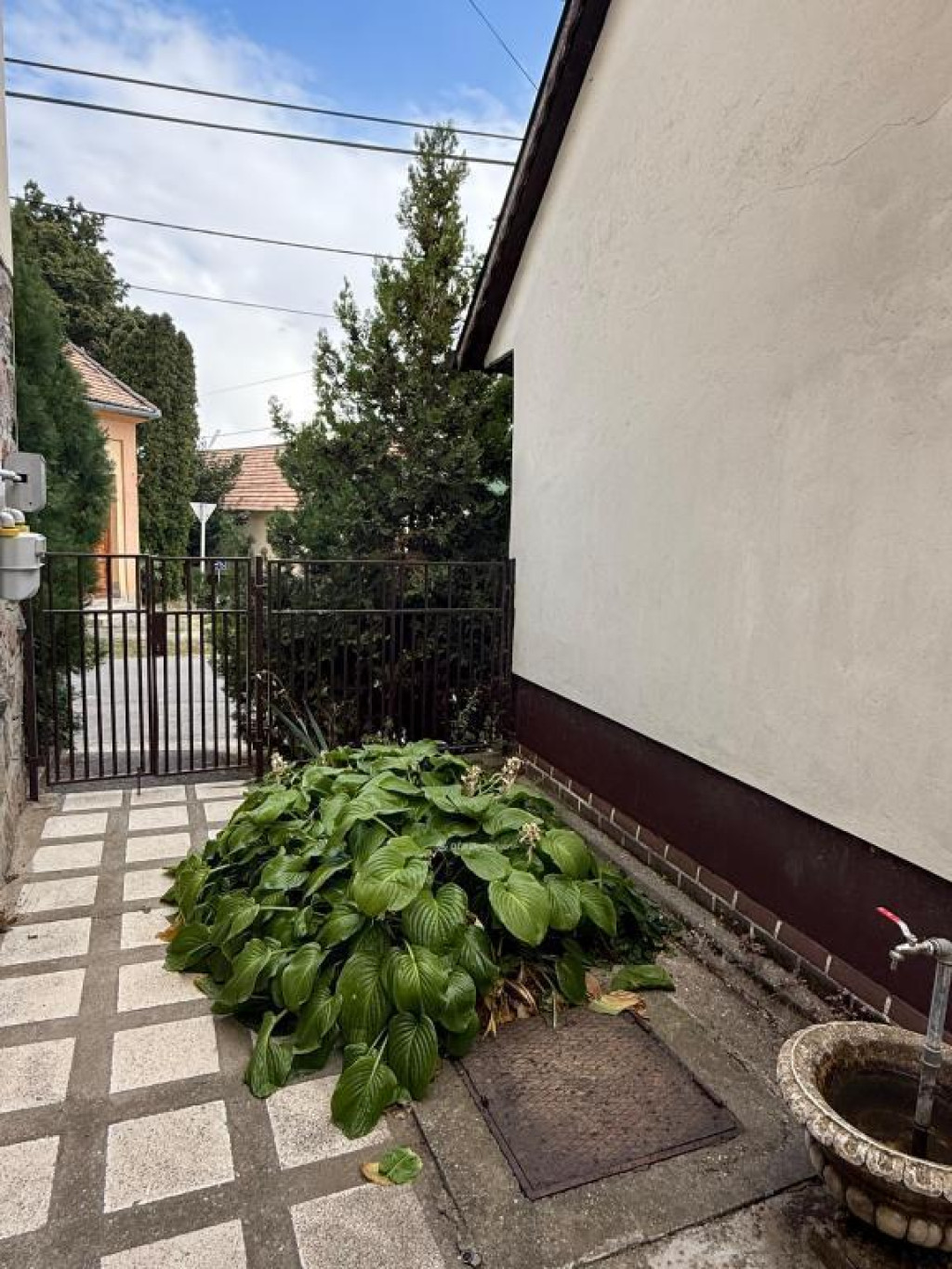 A síknak mondható 596 m2-es gondozott telek gyümölcsfákkal, pár sor szőlővel és melléképületekkel díszített.